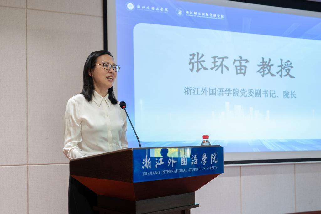 张环宙代表学校感谢专家们的到来。她简要介绍了学校的发展情况,并指出,浙外始终坚持以多语种优势主动服务区域经济社会发展需求,积极服务浙江开放强省的智囊高地建设。本次论坛立足浙江、服务全国、放眼世界,旨在合力打造政产学研综合性服务平台,共同助力共同富裕和“两个先行”建设,共创“城市让生活更美好”新境界,共推“城市之窗”展示“共富之路”,传播“中国之治”。