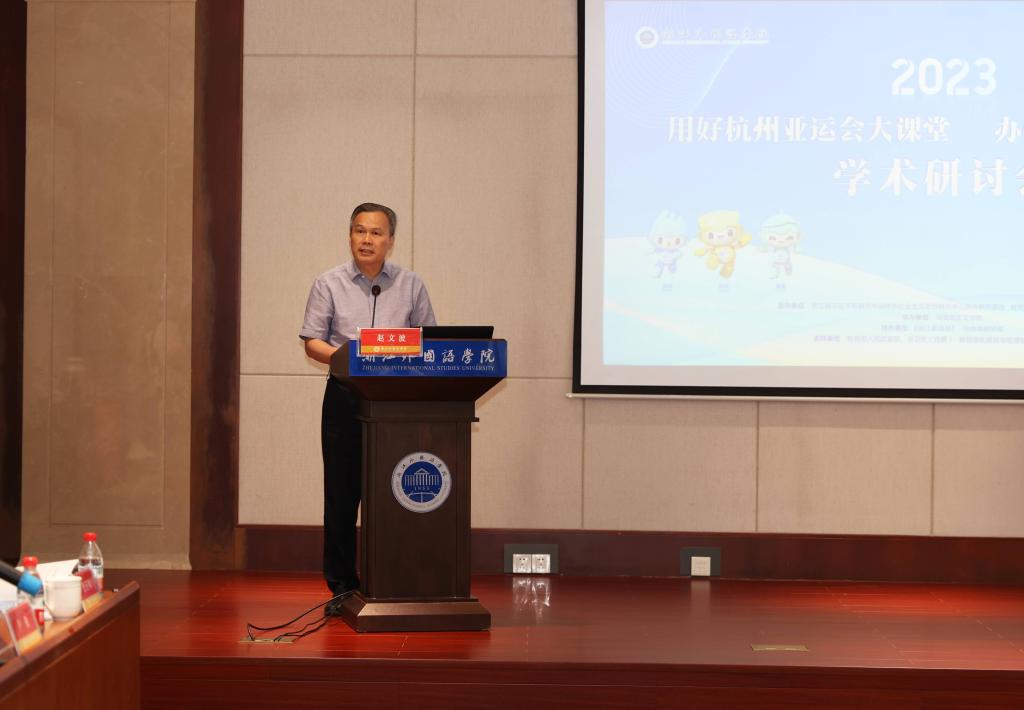 在杭州亚运倒计时100天即将到来之际,6月14日,“用好杭州亚运会大课堂,办好学校大思政课”学术研讨会在kaiyun开云官方举行。亚洲奥林匹克理事会教育委员会委员、北京奥组委专家、杭州亚组委相关负责人,北京体育大学、上海体育大学、武汉大学、中共浙江省委党校等省内外高校专家学者线上线下齐聚浙外,就如何聚焦亚运宝库,办好“大思政课”展开深度交流研讨。