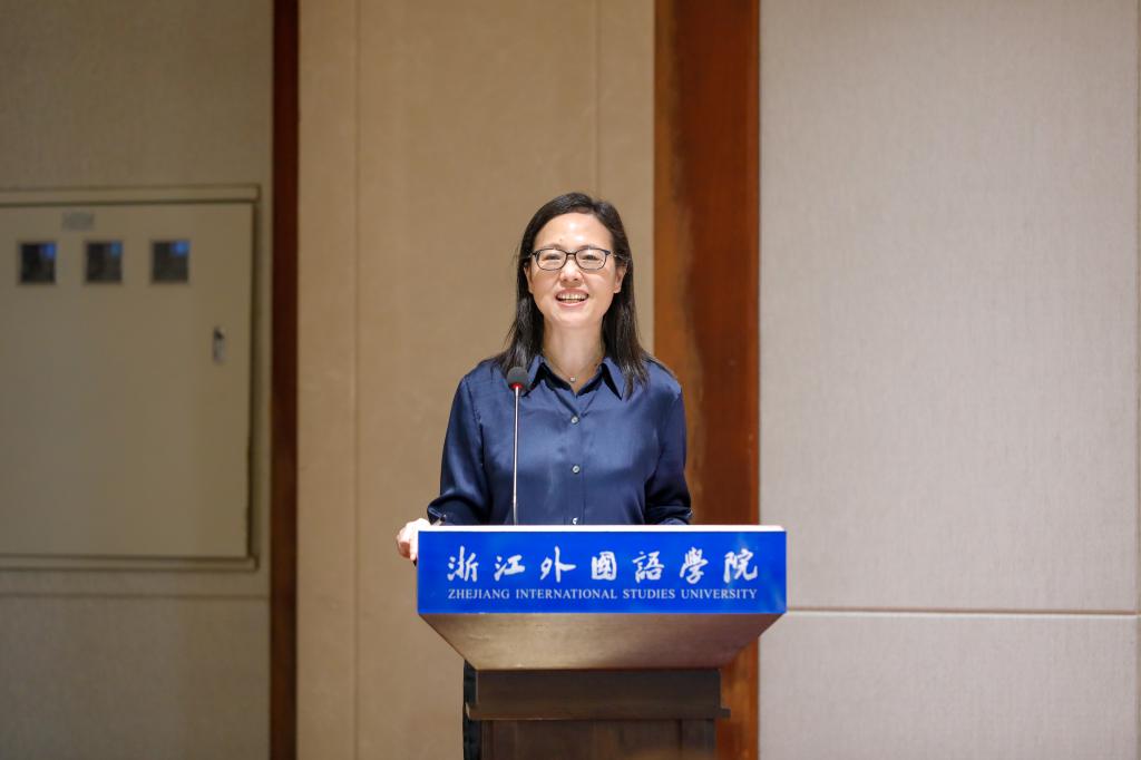张环宙向获奖教师和学院表示祝贺,对各学院(部)、职能部门为学校青年教师发展和教学质量提升所做出的努力和贡献表示感谢。她用“三个加强”“三个完善”“三个提升”“三个推进”阐述了一条具有浙外特色的内涵式、高质量青年教师队伍建设之路。