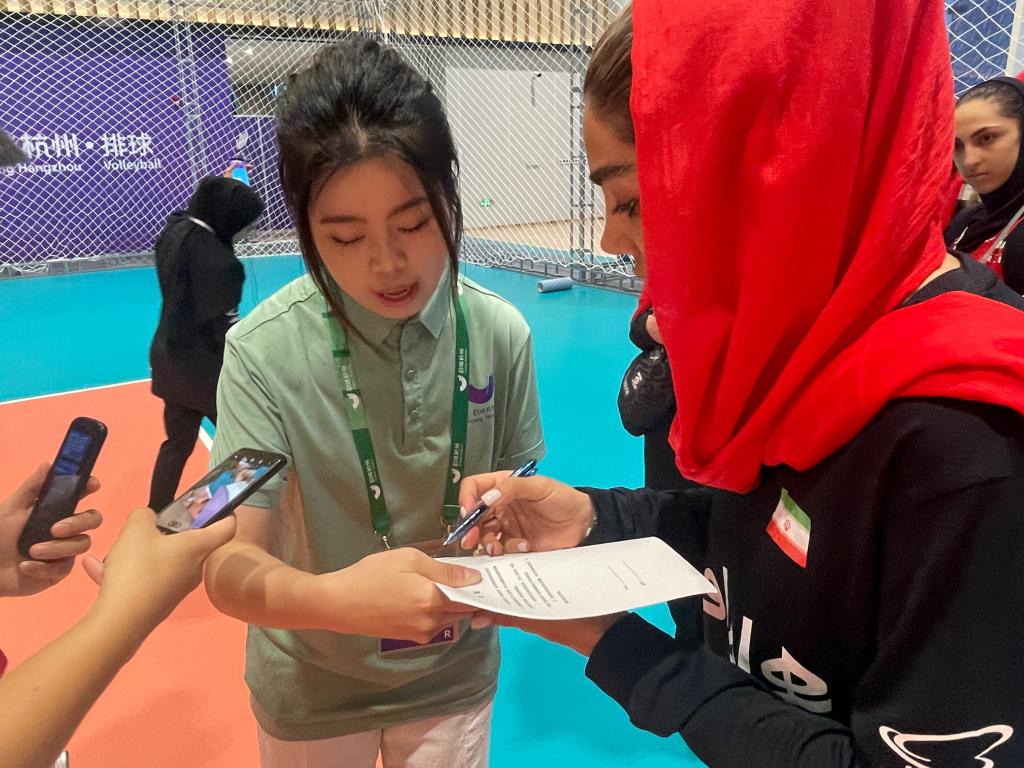 作为一名杭州亚运会赛会预录用志愿者,2021级商务英语专业的林安琪对本次志愿服务充满信心和期待。从4月份的杭州亚运会代表团团长大会到刚刚结束的韵味杭州·综合测试赛,林安琪一直参与其中。在韵味杭州·第一届亚洲U16女子排球锦标赛中,林安琪担任伊朗女排代表团随团助理,主要负责比赛训练计划、赛程安排、交通物流等的信息核对和反馈,随队前往训练场馆或比赛场馆,协助参赛代表团沟通、解决问题并将其需求反馈给相关部门。“从第一天接机,运动员们彬彬有礼对我打招呼到测试赛期间主教练赠予我伊朗队队徽,再到教练们对我说‘Thank you for everything you've done for us’,我体会到付出被认可的喜悦之情。”她说,志愿服务是一项繁琐艰巨的任务,但她深知责任越大,越要激发内心的力量,绷紧这根弦。