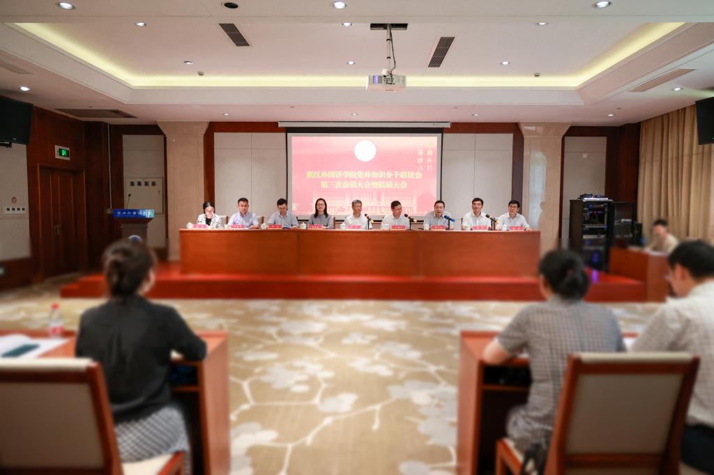 正式会上,新当选会长李敏发言。民进浙外支部主委张跃西代表学校民主党派(统战团体)致贺词。