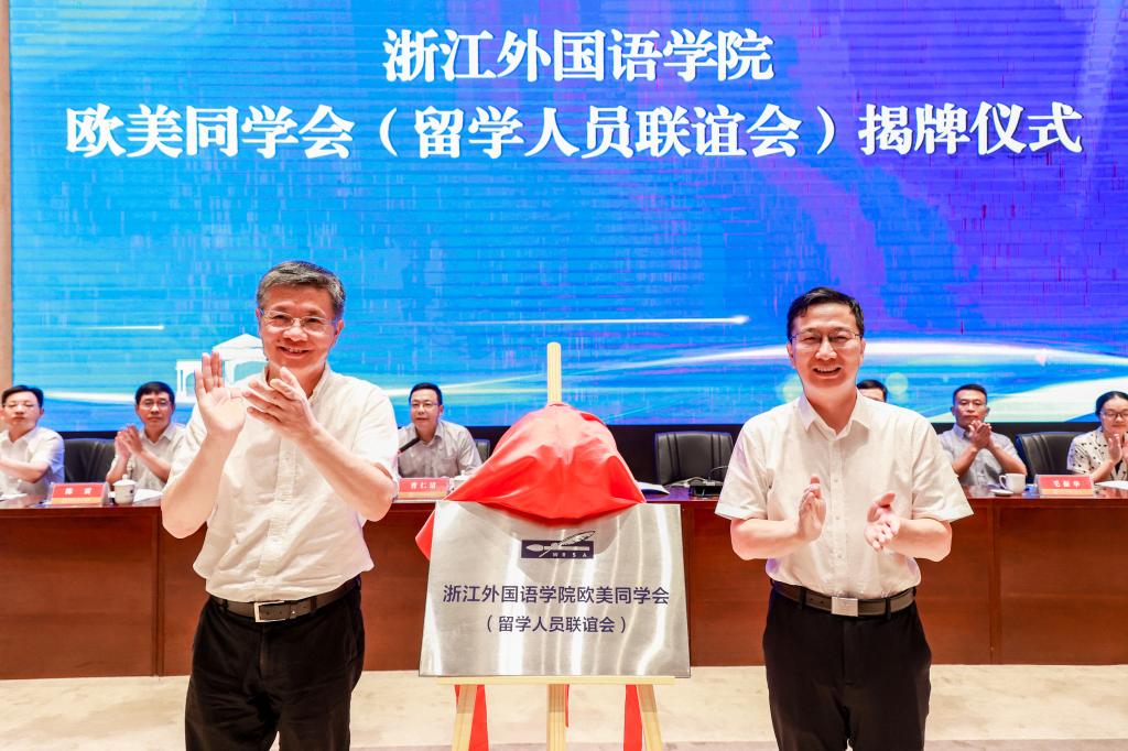 王利月代表省委统战部对学校欧美同学会(留学人员联谊会)的成立表示热烈祝贺。他指出,欧美同学会是一个具有百年光荣传统的留学人员组织,是中国共产党领导的,以归国留学人员为主体自愿组成的具有高知性、统战性的群众团体。浙外欧美同学会(留学人员联谊会)的成立,充分体现了学校党委对留学人员工作的高度重视,反映了全校广大归国留学人员的迫切愿望和现实需要,为全省欧美同学会工作注入了新鲜血液,增添了新生活力。他希望浙外欧美同学会(留学人员联谊会)要加强政治引领,强化理论武装,增强组织向心力;要聚焦作用发挥,发挥专业优势,积极建言献策,增强组织服务力;要加强自身建设,完善工作机制,拓展对外交流,扩大组织影响力,努力把广大留学人员紧密团结在党的周围,在以“两个先行”打造“重要窗口”、谱写中国式现代化浙江篇章中彰显海归担当。