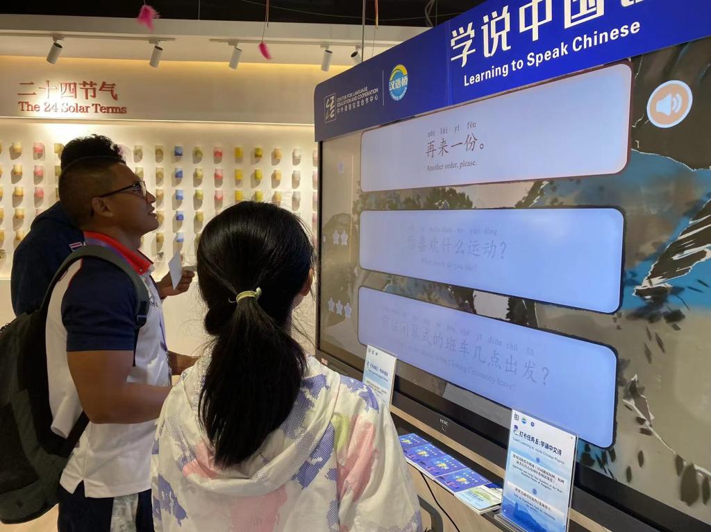 泰国运动员SAMARN SAELEE 对中文非常感兴趣,他和同伴体验了学说中国话项目。他说,自己之前接触过一点点中文,所以根据拼音,可以完整读句子。体验结束后,他还获得了kaiyun开云官方赠送的“学说中国话”学习手册。