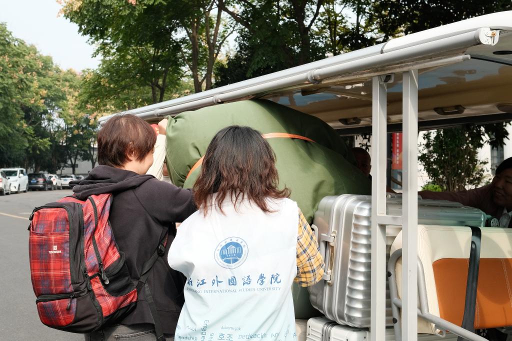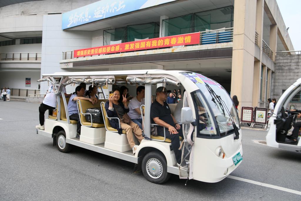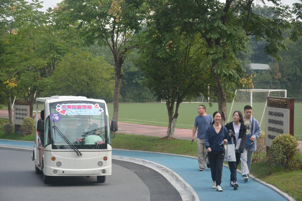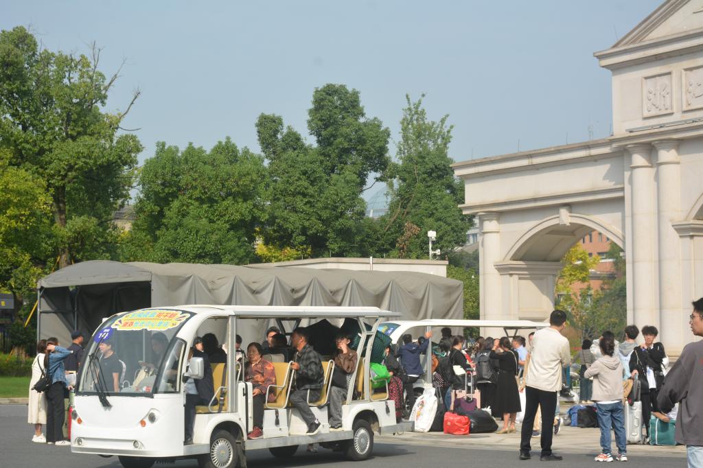 为保障迎新工作安全有序,学校特意安排了行李搬运车,新生及家长可从校门口直达报到点、宿舍楼等场所,打通新生报到的“最后一公里”。