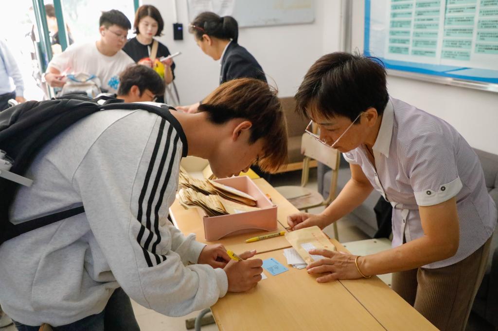 行健馆内的报到现场,新生通过“刷脸”认证,钥匙、一卡通、档案等事宜轻松搞定。现场还设立了新生报到数据监测站,大屏分类项数据实时展示新生报到情况,让学校各部门、学院更精准地对接迎新工作。