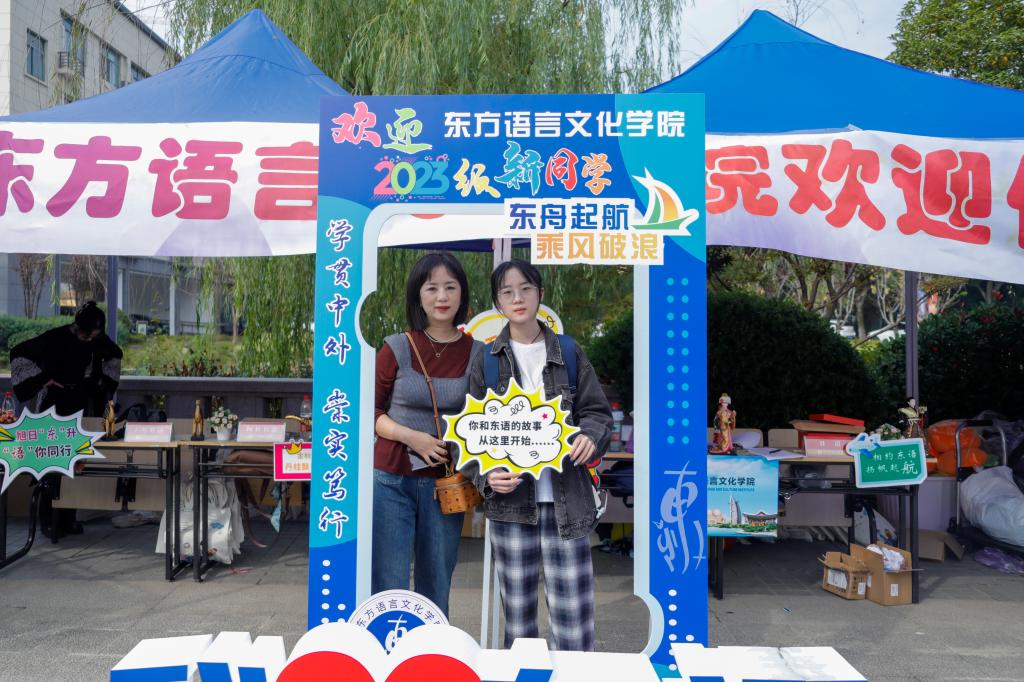 校园里随处可见“欢迎新同学”的标语和展板,还有立体合影展台和入学微表情墙等,营造出了浓浓的暖心氛围。