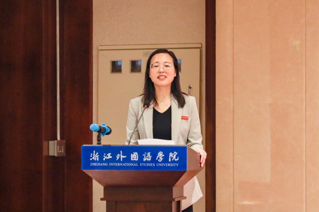 张环宙对优秀人才加盟浙外表示热烈的欢迎。她以浙外的数位“大先生”为例,阐释何为“经师”和“人师”相统一的“大先生”,并勉励广大新教师要向身边的榜样学习,争做“大先生”。张环宙对新教师提出了三点殷切期望:一是要锤炼师德,担当使命。教师们要主动担当“为党育人,为国育才”的重要使命,秉承师者引路人的传统与嘱托,锤炼师德师风,做到爱生荣校,焕发齐心协力推动学校高质量发展的斗志与活力。二是要怀揣梦想,持之以恒。教师们要将课堂、课程、课题统合起来,将育人与教学、科研协同起来,在教学上、学术上多出成果。三是要相互帮助,共同进步。教师们要形成有战斗力的团队,相互激励、彼此帮助、互相理解、共同进步、携手向前,发挥各自的优势,产出高质量的成果。