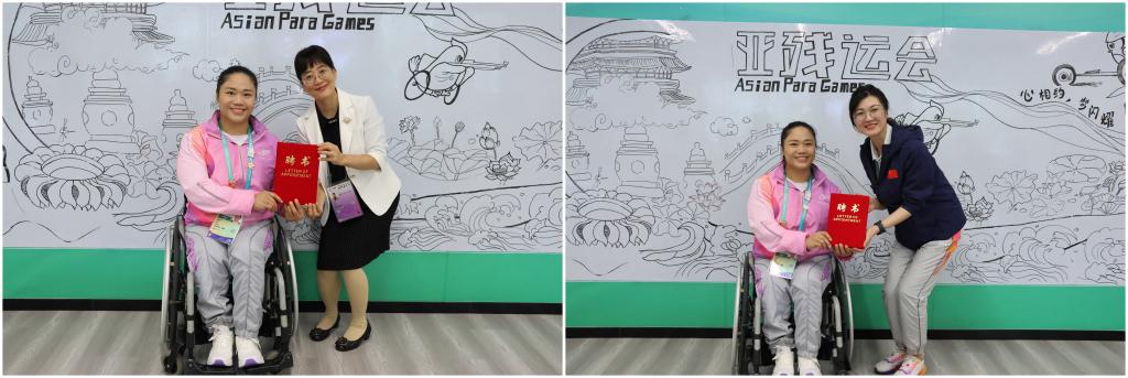 “感谢你们在亚残运期间的辛勤付出!”“特别棒的浙外‘小青荷’,为你们骄傲,加油!”……10月20日,浙外“小青荷”与里约、东京两届残奥会冠军,杭州第4届亚残运会首棒火炬手谭玉娇相约亚残运村,面对面热切交流。