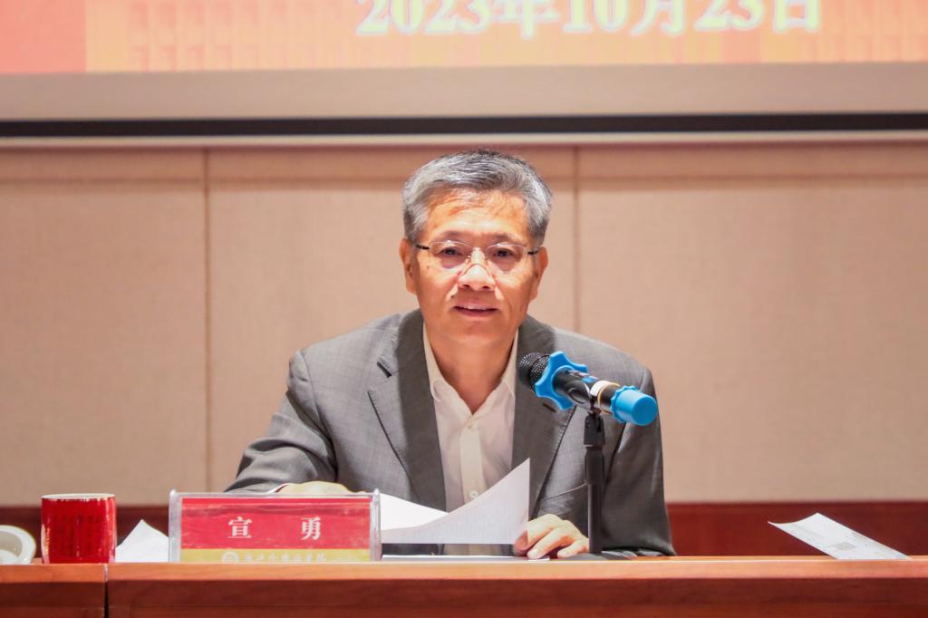 宣勇首先代表学校党委行政向离退休老领导老同志致以节日的问候和重阳佳节美好的祝福。他从坚持党建统领、持续塑造变革、落实立德树人、提升办学内涵、强化基础支撑等五个方面通报了学校2023年事业发展情况及取得的成绩。