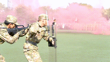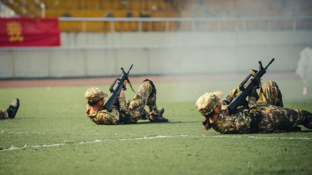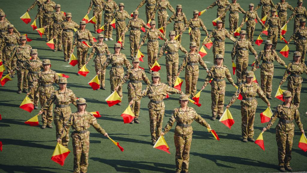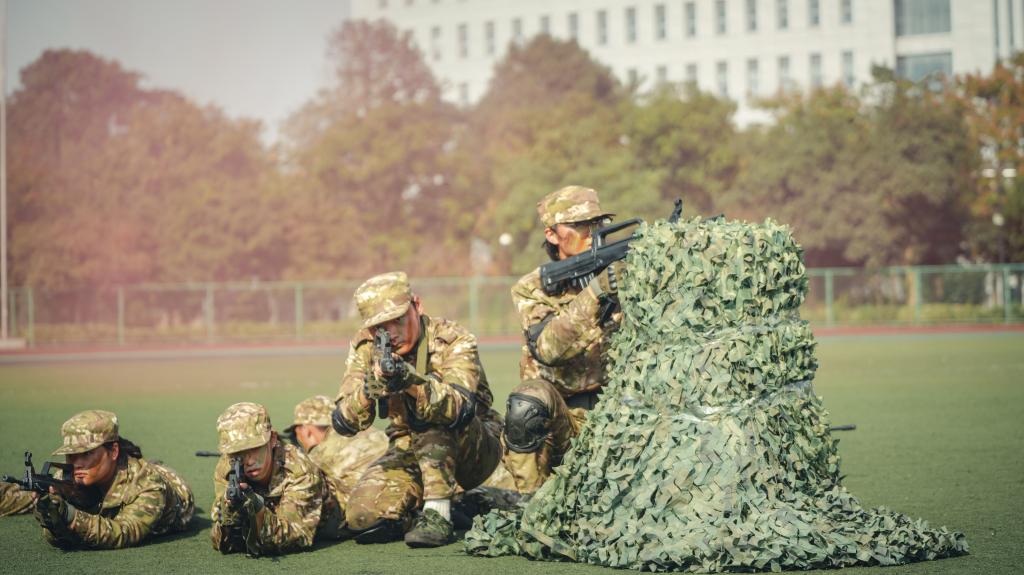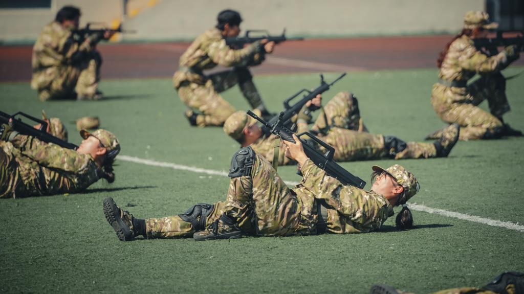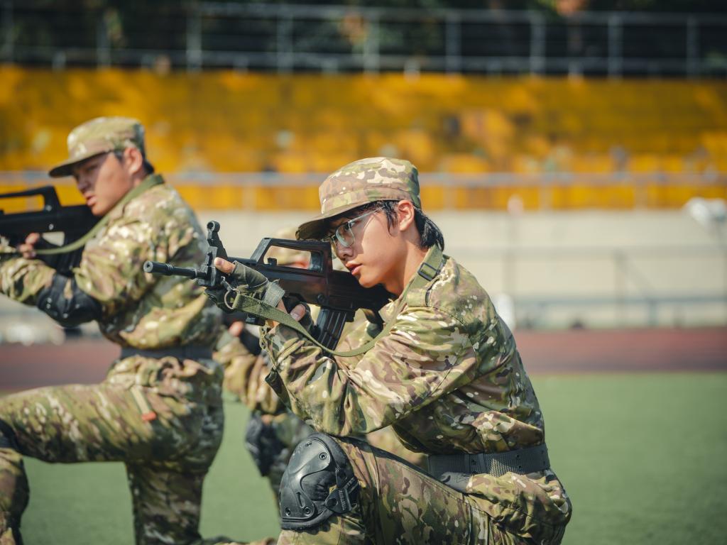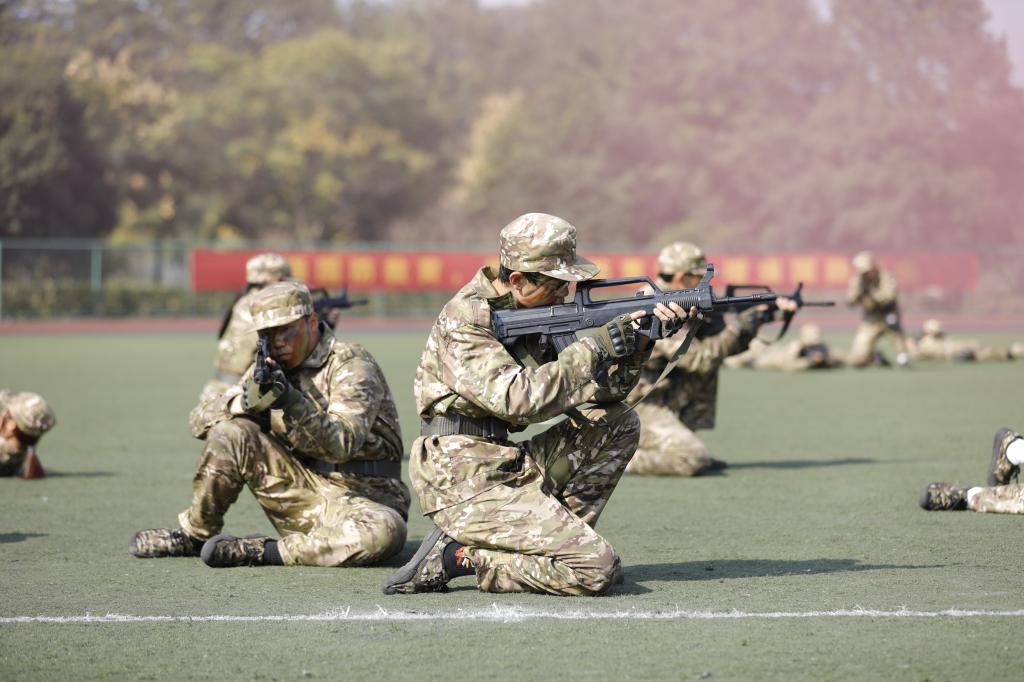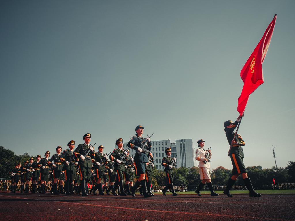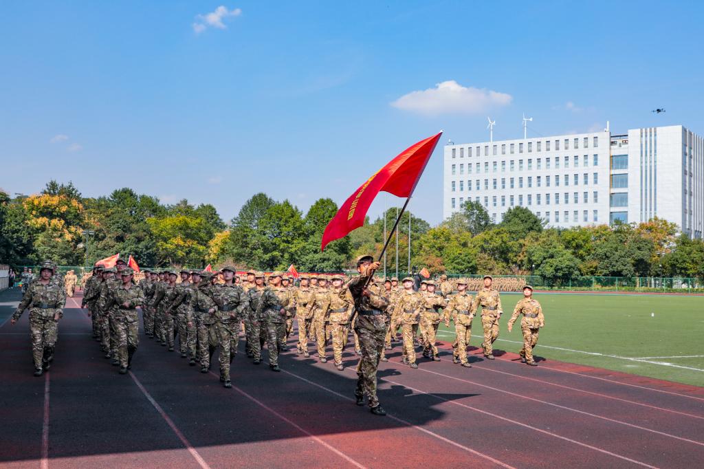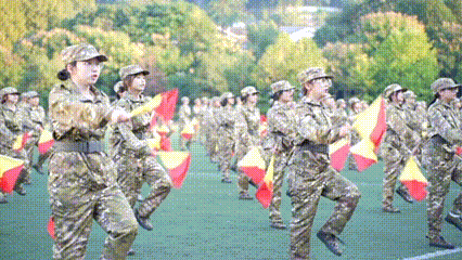 汇报表演现场,2023级浙外学子激昂意气,奋发志气,分列式方队气势昂扬,班排战术训练身形矫健,应急棍方队行云流水,旗语操方队整齐划一,充分展示着如朝阳般蓬勃的青春力量和强国有我的必胜决心。