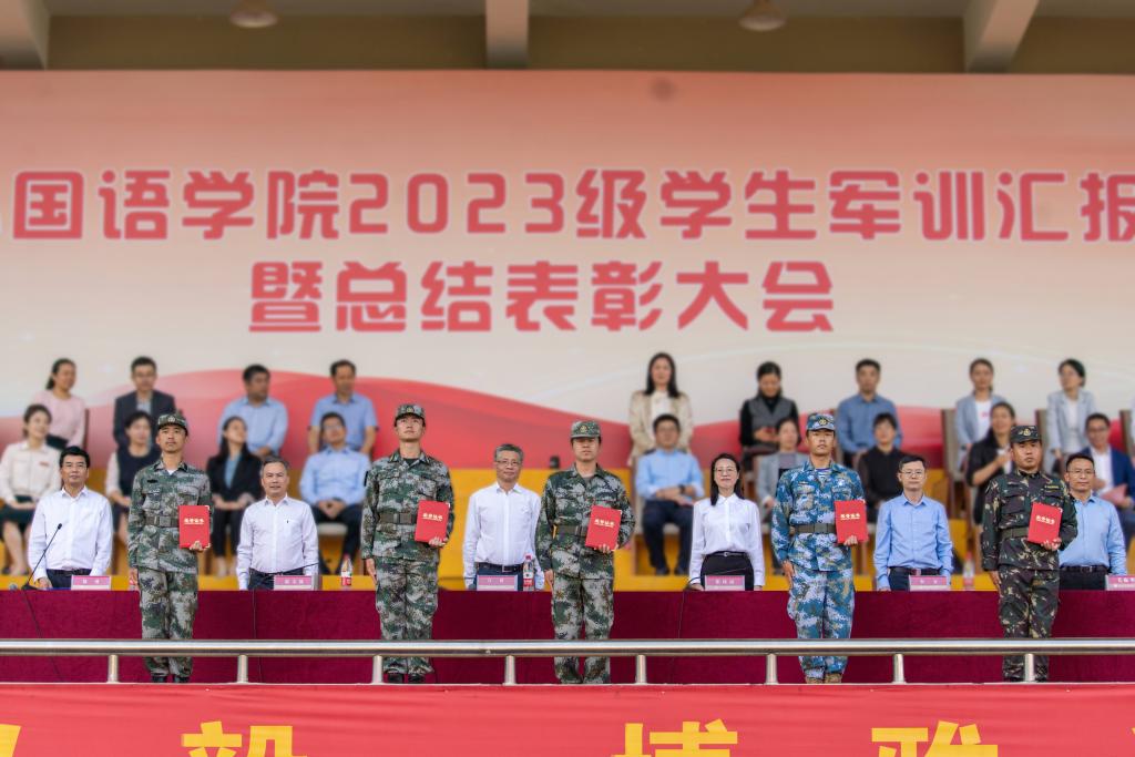 表彰仪式上,宣勇、张环宙为军训先进连、军训教官优秀组织奖获得者颁奖。赵文波宣读2023级学生军训表彰文件。其他校领导为队列会操优胜连,红歌合唱优胜连,风采奖、气势奖获奖连,内务卫生优胜宿舍,军训先进排,军训优秀教官代表,军训优秀指导员,军训先进个人代表等获奖集体和个人颁奖。