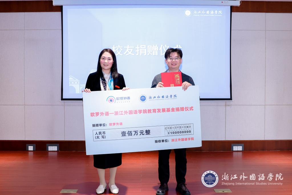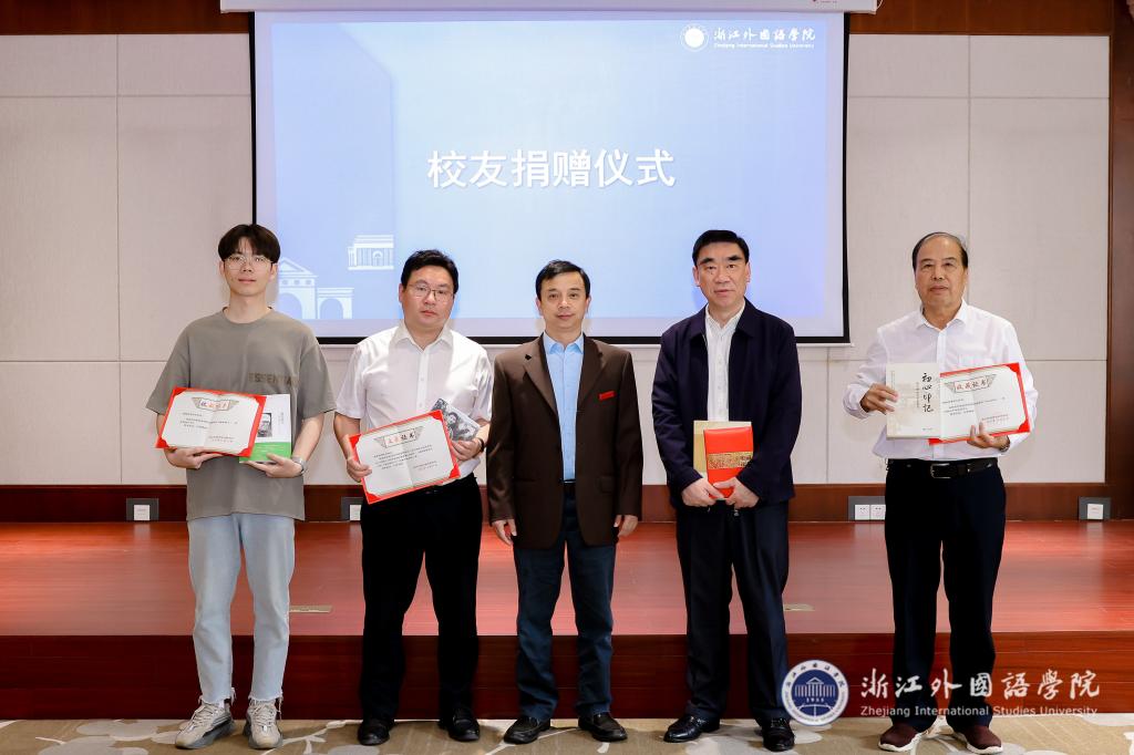 校友捐赠仪式上,开云官网19届西班牙语专业校友朱烜向母校教育发展基金会捐赠100万元。开云官网92届教管本科班校友、景宁畲族县委党校原党委书记潘作仁,97届物理本科班校友、温州市教师教育院原院长潘建中,2005届企业经营与管理专业校友、浙江省建工集团有限责任公司材设公司副总经理邹华兵,2022届英语(师范)专业校友、杭州市弘益中学教师谭冬泉,将自己的著作和精心挑选的专业书籍捐赠给母校,希望书籍惠及更多在校学生。