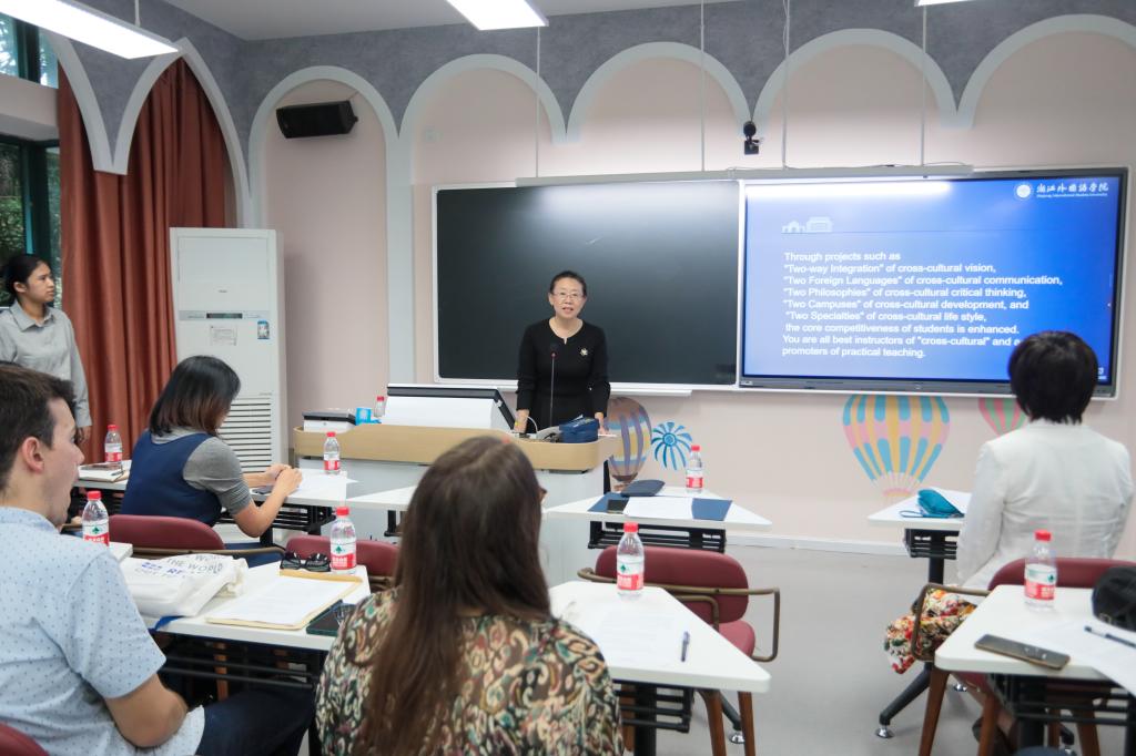 柴改英感谢外国文教专家过去一年的辛勤付出,对他们取得的丰硕成果表示充分肯定,同时代表学校对新加盟浙外的外籍教师表示欢迎。她指出,当前,学校正在进行人才培养的综合改革,确立了以跨文化能力和实践能力为着力点,通过跨文化视野“双融通”、跨文化沟通“双外语”、跨文化思辨“双哲学”、跨文化发展“双校园”、跨文化生活“双特长”等工程,提升学生核心竞争力。外国文教专家是“跨文化”的金牌导师,也是实践教学的积极推动者。柴改英希望外国文教专家们更用心地爱学生,引领和支撑学生追求理想、实现卓越,成为社会的栋梁;更用心地爱工作,站稳课堂、深耕课程、研究课题,把育人与教学、科研有机协同,用学术力量实现更好的发展;更用心地爱同事,共设目标、相互关爱、分工协作。