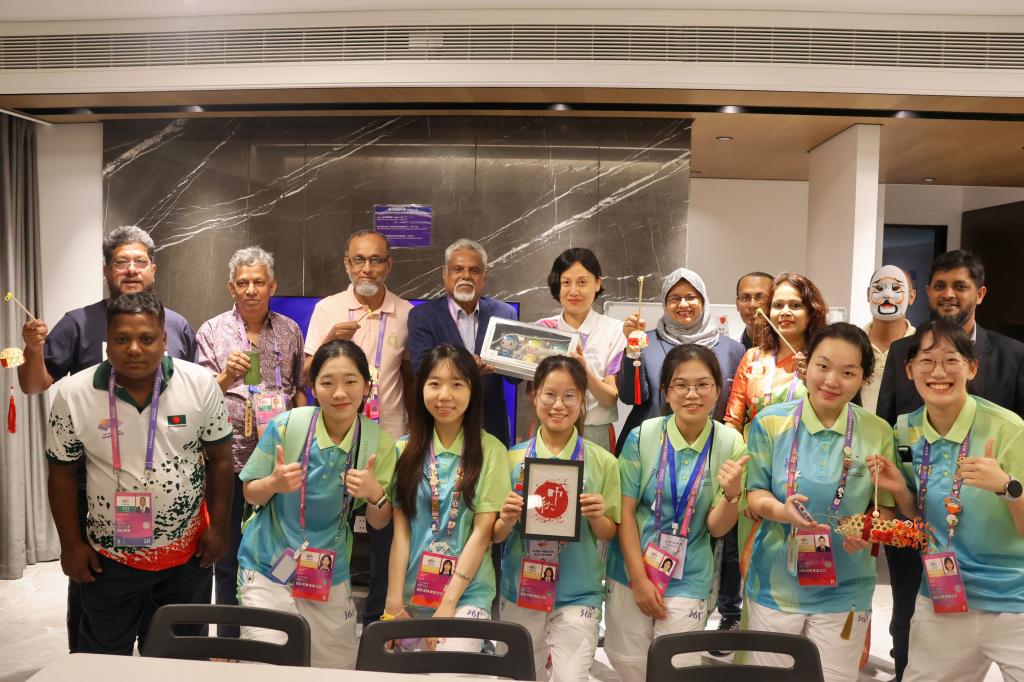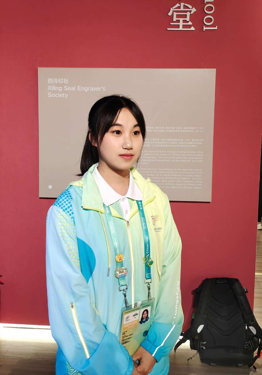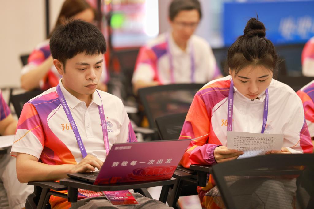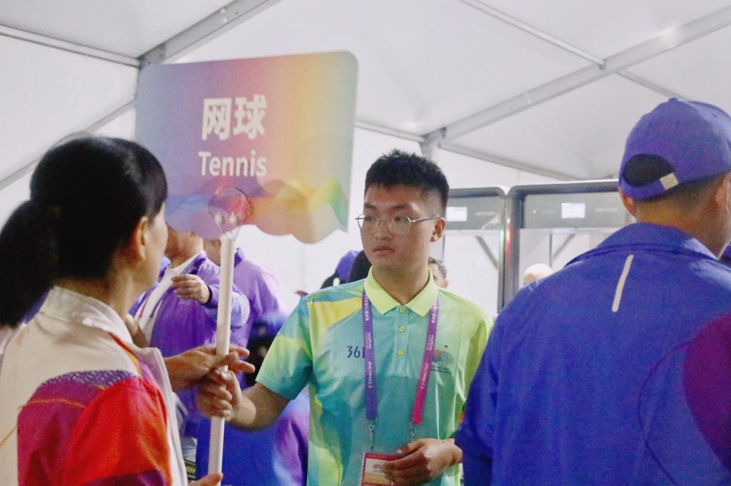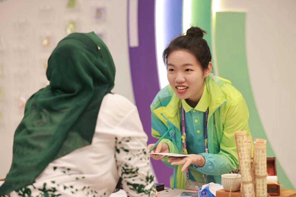 亚运会既是一场体育盛会,也是一场文化交流的盛会。NOC/NPC助理曹彦生在志愿服务工作中自觉担起了传播中华文化的使命。当看到外国代表团对皮影戏、剪纸、投壶等中国传统项目感兴趣时,他都会用英语为外国友人讲述这些项目中所蕴含的中国故事,帮助他们体验中国传统项目,还教他们学习这些项目的中文表达。在服务孟加拉国代表团时,他都会用中文说“你好”“再见”。“当听到运动员们用中文和我打招呼时,我既开心又激动,我觉得这是对中国文化的一种认可。特别是当看到他们对中国文化表现出强烈的好奇心时,更坚定了我讲好中国故事的决心。我希望让更多的外国友人爱上汉字,爱上中文,让‘你好’‘谢谢’成为更多人打招呼的方式。”