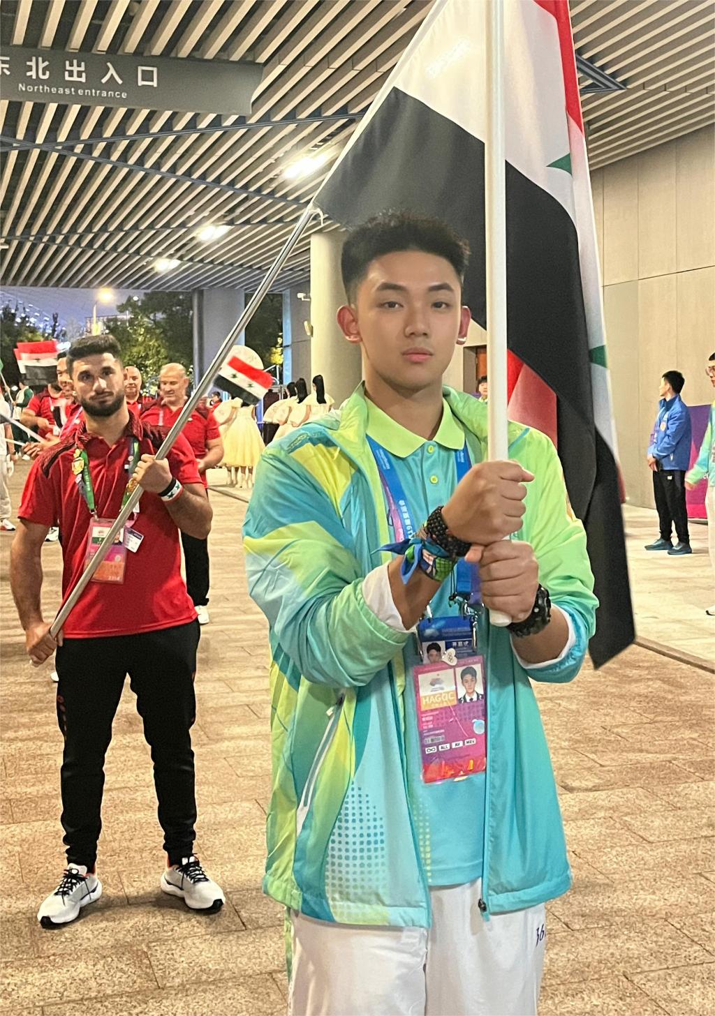 蔡明喆引导叙利亚代表团开幕式入场。