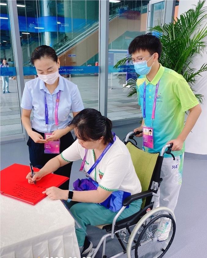亚残运村主分级师助理宋郁姣负责对接草地掷球视力的四名分级师。分级师们精益求精、先人后己、敬职敬业的工作态度深深地感染了宋郁姣。受分级师们的影响,她都会提前一天梳理好分级师们出行所需物品,每次工作开始前做好仔细检查,结束后都会认真复盘,时刻让自己处于“备战”状态。