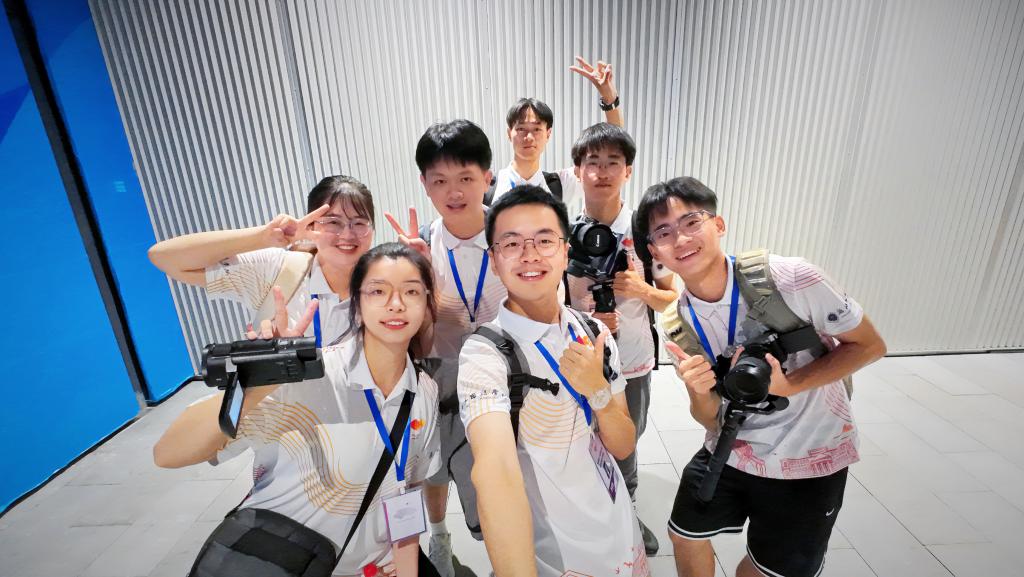 1万多张照片、1千多个视频素材、40余份“小青荷”日报……每一个镜头背后,都是NOC/NPC团队行政宣传助理陈豫闽、叶伟康、牛雨露、熊中铮、陈星宇、乐嘉骏、姚竣仁奔跑拍摄、熬夜探讨、用心用情剪辑的身影。为了更好地讲述亚运故事、“小青荷”故事,团队成员经常进行“头脑风暴”讨论宣传主题,以各种视角记录各岗位、各项活动的感人和难忘瞬间。“有时候都躺在床上了,突然想到一个新点子,会马上跳起来第一时间与团队成员分享。”陈星宇说。跑十几个小时跟拍一个故事,衣服总是湿了又干、干了又湿,有时只睡4-5小时,“用镜头记录浙外人服务亚运的身影,是一件光荣且有意义的事情,浙外人努力的样子值得被更多人看见。特别是当我们看到拍摄的素材被主流媒体刊用时,浙外人的光荣感和自豪感油然而生!”熊中铮说,有一次,他们忙完了阶段任务,刚准备吃饭,就收到央视记者征集素材的消息,他们立马放下手中碗筷,拿出电脑,一起挑素材、剪辑视频。“那一刻,一群热血青年围坐在一起,为了一个共同目标而努力的样子,就是当晚最美的夜色。”姚竣仁说。