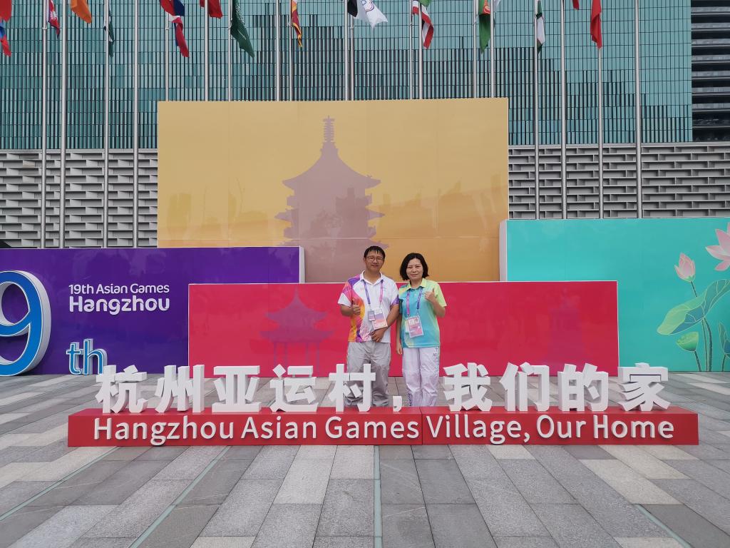 服务“家门口”的亚运盛会是志愿者服务助理杜茜与领队教师周长喜一直所期盼的。学校招募赛会领队教师时,夫妻俩坚定地做出了同一个选择。在繁忙的工作中,他们以“村”为家,以“小青荷”为自己的孩子,全身心投入到赛会服务中。每晚的一个视频电话是他们稍事休息的亲子时光,当儿子稚嫩的脸庞、奶声奶气的话语通过网络传递过来时,被工作掩藏的思念之情泉涌而出。“孩子才4岁,我们也很想每天都陪在他身边。”他们心里虽有牵挂,但更有自豪,“服务亚运让我们都更深刻体会到把‘小我’融入‘大我’的责任担当,更坚定在时代号角声中书写奋斗篇章的信念。我们把亲身经历的故事也讲给孩子听,希望在他心中种下一颗梦想的种子,期待他长大后也能放飞青春梦想。”