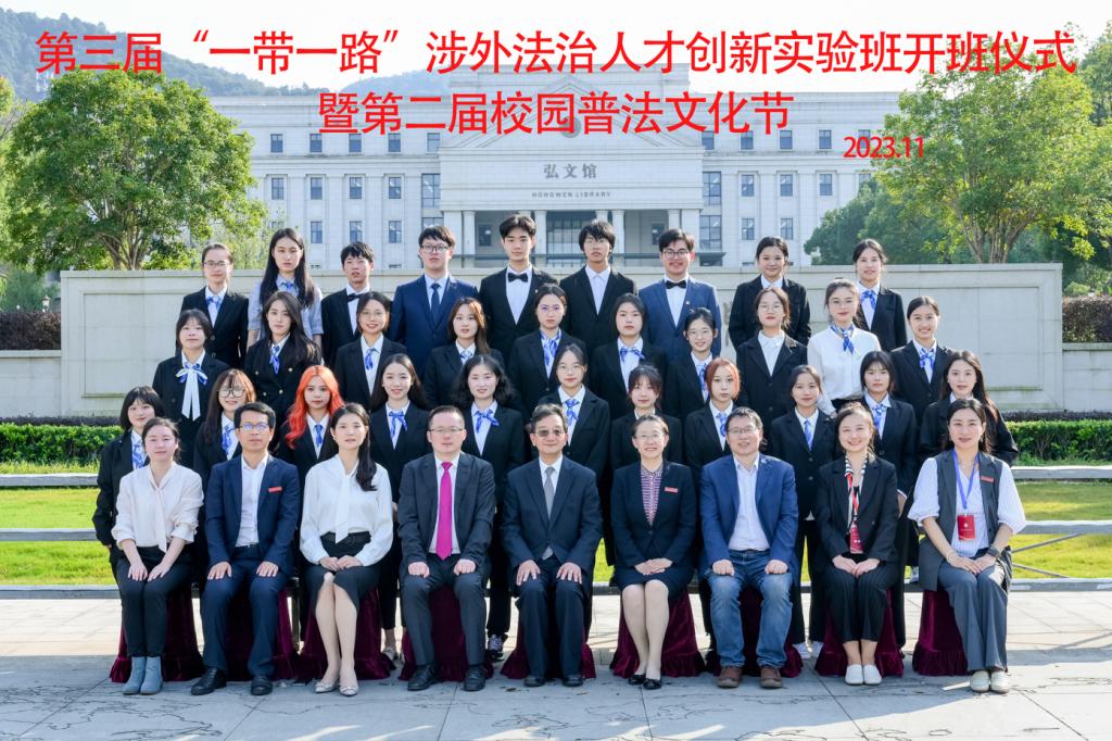 “一带一路”学院、华侨学院、国际学院班子成员,青年教师代表及第三届“一带一路”涉外法治人才创新实验班学员参加仪式。