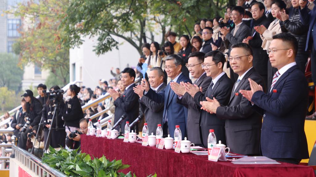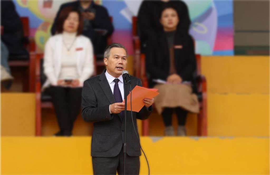 赵文波在致辞中指出,学校始终把体育工作摆在更加突出的位置,努力使学校体育同学校事业发展要求相适应,同广大师生对丰富的优质体育资源期盼相契合,努力构建新时代德智体美劳全面培养的教育体系。近年来,学校在体育教育教学中构建体育课程夯基、体育社团提升、运动训练卓越的“体育教育平台”,形成第一课堂体育教学、第二课堂体质锻炼、第三课堂校外竞赛、第四课堂国际体育文化交流的“四课堂联动”培养模式,营造学校大体育教育格局,并致力于打造具有浙外特色的体育文化。希望全体师生员工能以本次运动盛会为契机,团结协作,勇于拼搏,养成体育锻炼的良好习惯,以健康的体魄和饱满的热情投入到学校各项事业的建设中来。