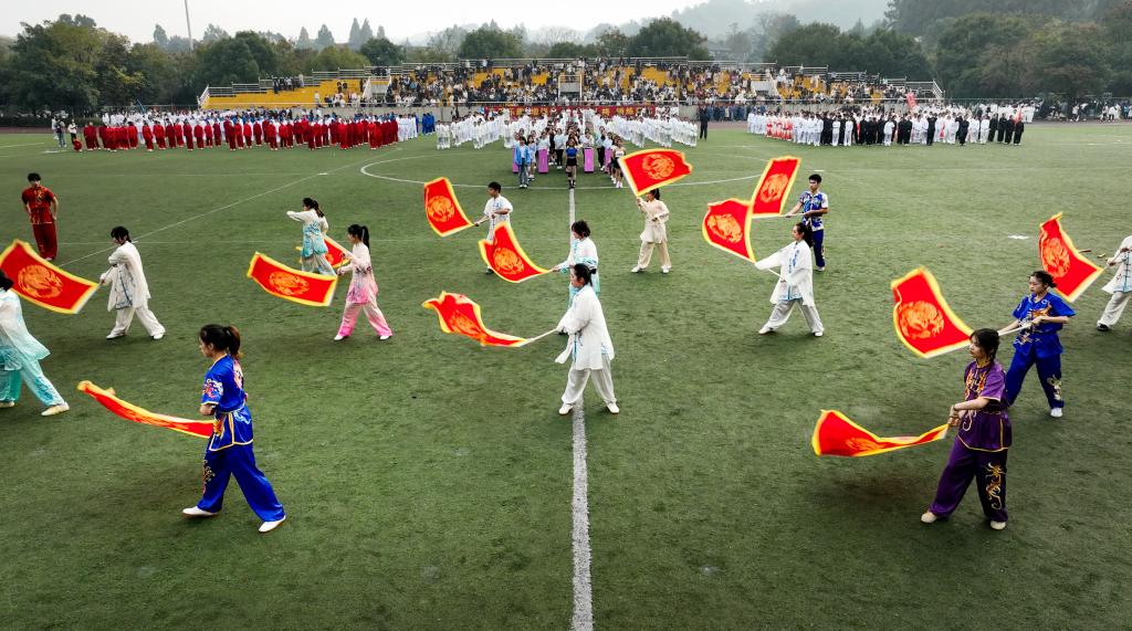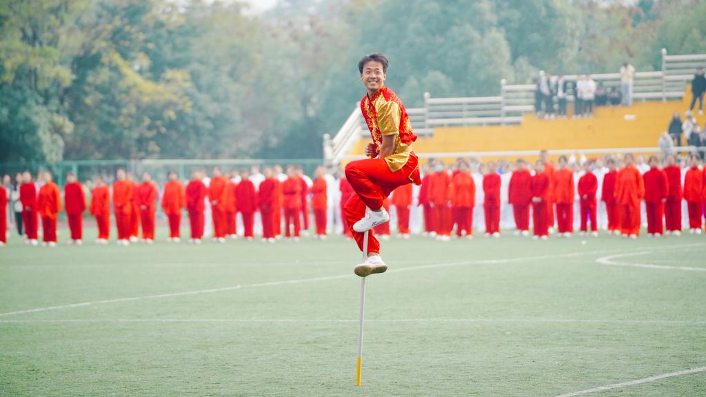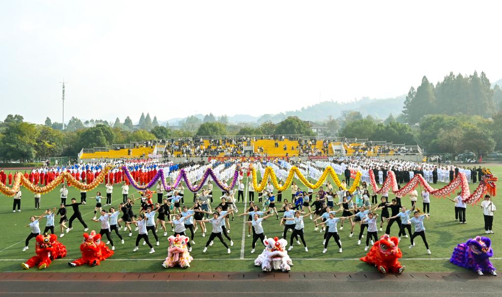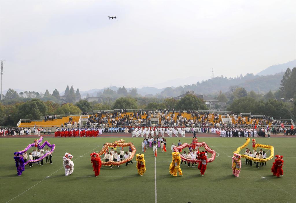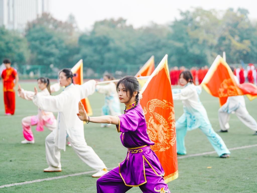 伴随青春动感的音乐,开幕式表演在一片片欢呼声中展开。高亢的节奏,舞龙舞狮争锋角逐,锻造少年胆气;昂扬的激情,武术队稳健潇洒,展现精神风貌;跳跃的步伐,舞蹈队轻盈流畅,诠释青春魅力;自信的姿态,健美操和体育舞蹈热情如火,点燃赛场气氛。太极拳刚柔并济,八段锦动静融合,彰显传统体育的内敛之美。
