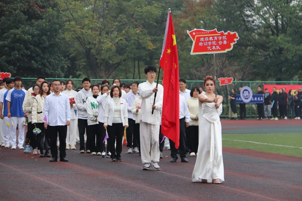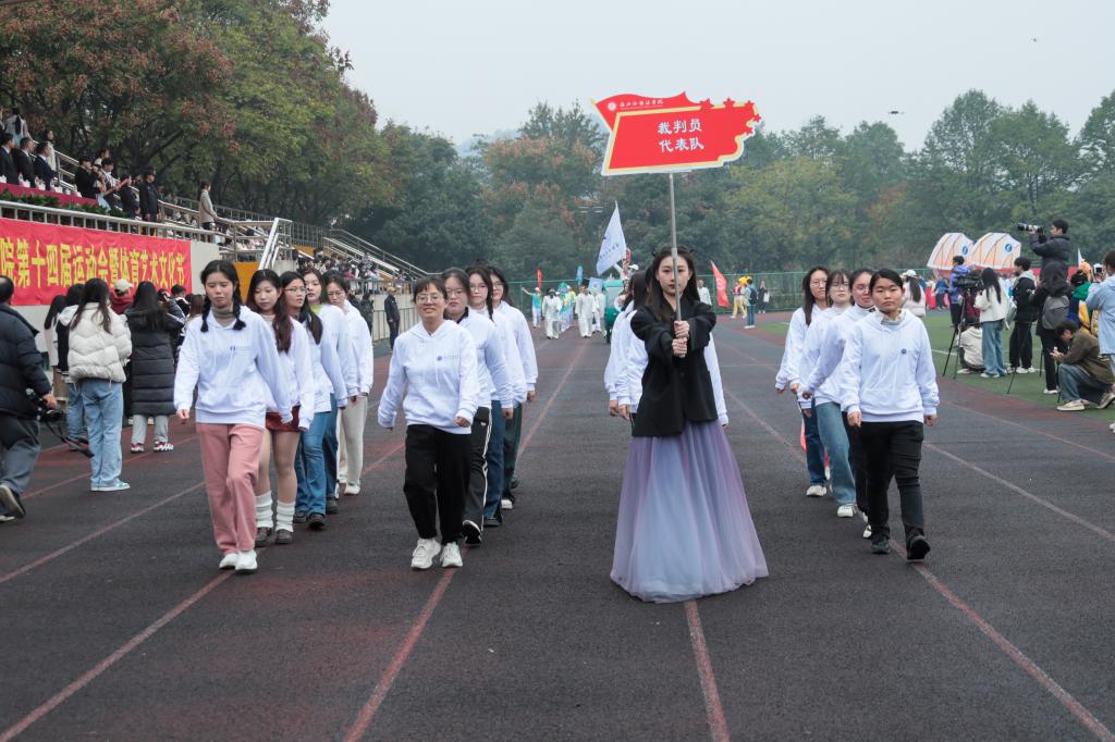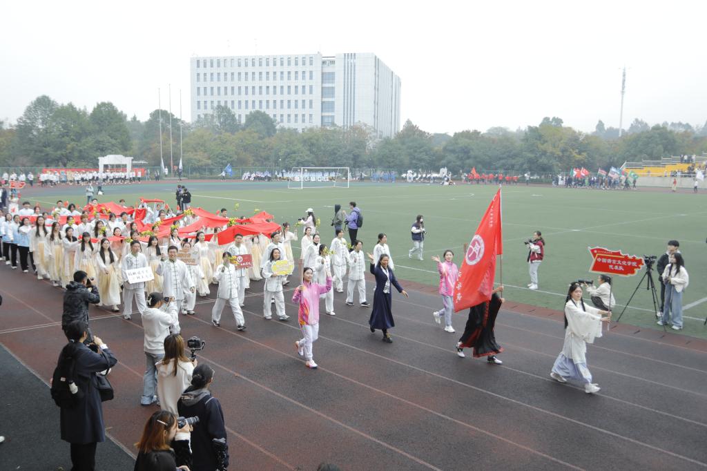 开幕式伊始,国旗队、彩旗队、裁判员代表队、志愿者代表队身姿挺拔,迈着整齐的步伐走向主席台。他们神采飞扬,洋溢着蓬勃的朝气,迸射出青春的锐气,焕发着青春活力。各学院、单位绚丽多彩的方阵渲染了开幕式激情飞扬的氛围。