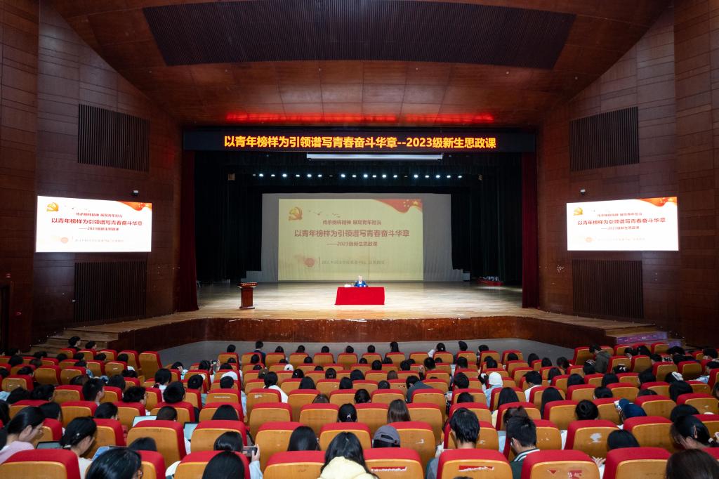 “以青春之名传承历史,执青春之笔书写未来。”11月23日下午,校党委书记宣勇以《传承榜样精神,展现青年担当,以青年榜样为引领谱写青春奋斗华章》为题,为2023级学生讲授思政课。来自各学院的近900名学生代表现场聆听了讲座,其他同学通过直播收看学习。
