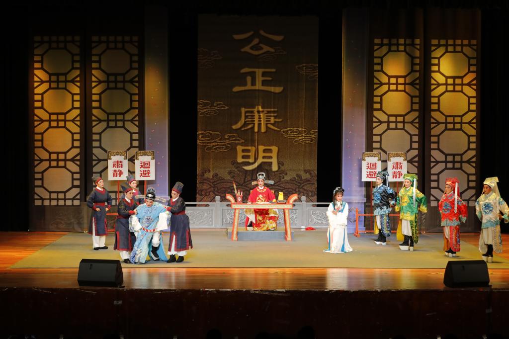 越剧《花中君子》源出于河北梆子传统戏《陈三两》,由艺术学院和建德市越剧研究会联合演出。该剧分为《受贿知多少》《拾金报恩寺》《赠弟卖身银》《认弟》《两弟赴京试》《毒计卖三两》《赃官初受贿》《公堂重相逢》等经典选段,以莲之精神比喻人物之风貌,通过对姐弟二人面对现实诱惑不同的反应,诠释了“洁身自爱”的人文品格,警示鞭策人性中脆弱的一面,弘扬了中国传统文化中奉行的为人中正、诚实守信、品行端正的优秀品格。该剧排练历时3个月,吸引了全校600余名师生现场观看。