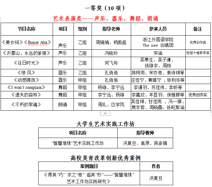 近日,2023年浙江省大学生艺术节在杭举办,浙外斩获多项佳绩,选送作品获一等奖10项、二等奖5项、三等奖9项、校园十佳歌手1名、优秀创作奖2项,获奖等级和数量均创历史新高,并荣获“优秀组织奖”,取得开云官网在该项赛事的历史性突破。