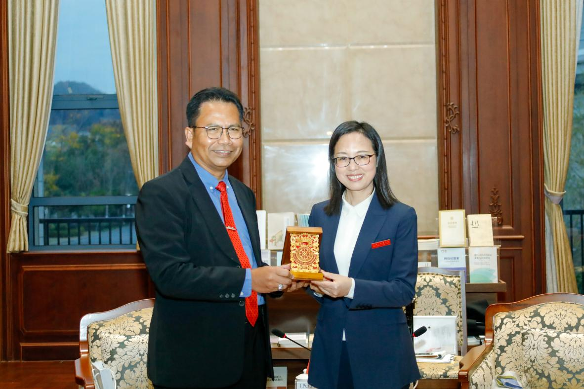 阿迪亚·米卡表示,2023年是中国与印度尼西亚建立全面战略伙伴关系十周年,中国和印尼的交往源远流长,乌达雅纳大学与浙外两校间的合作具有良好的条件和广阔的前景。他期待未来两校通过共建中国-东盟跨文化研究院,通过语言与跨文化交流、中国-东盟交往史、文化遗产保护传承利用、遗产旅游等方面开展联合研究,实现全方位、宽领域、多层次的合作。