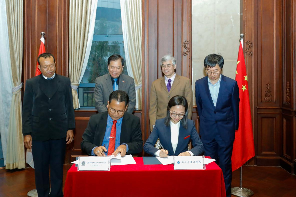 日前,校长、党委副书记张环宙会见印度尼西亚乌达雅纳大学副校长阿迪亚·米卡一行。在驻印度尼西亚登巴萨原总领事苟皓东、北京大学跨文化研究中心秘书长赵白生教授的见证下,双方签署谅解备忘录和共建中国-东盟跨文化研究院协议,并就两校加强合作、更好地服务中国-东盟伙伴关系建设等进行交流。