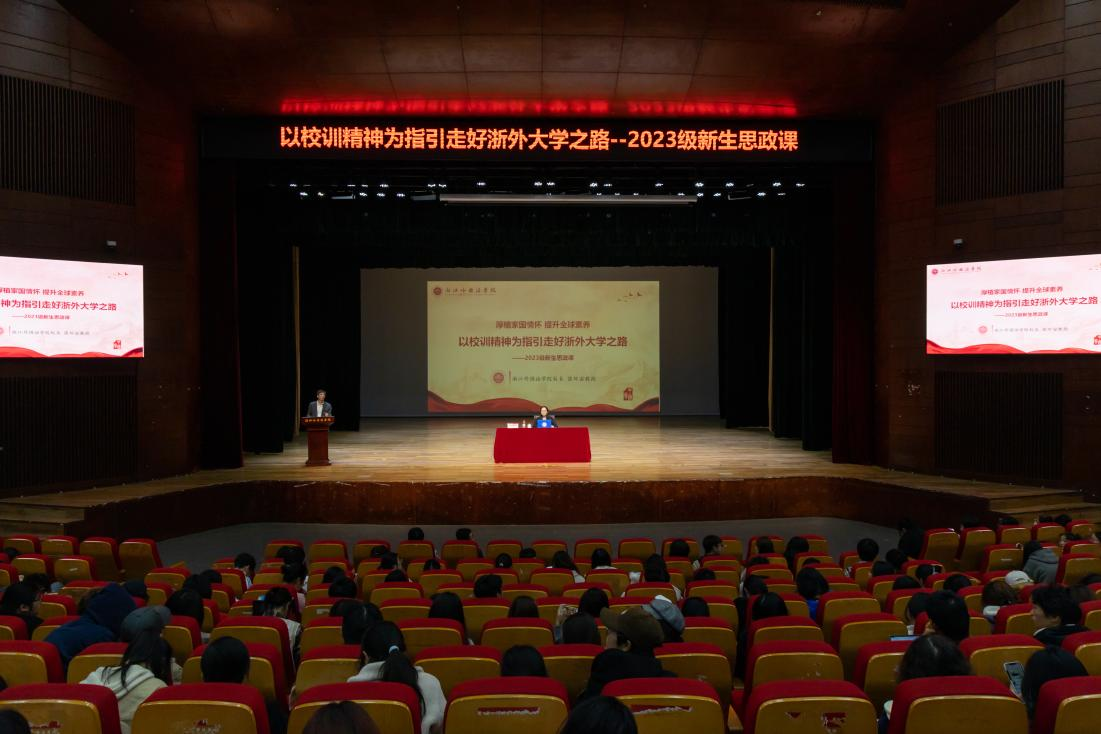 “奋斗是青春最靓丽的底色,行动是青年最有效的磨砺。”12月14日,校长、党委副书记张环宙以“厚植家国情怀、提升全球素养,以校训精神为指引走好浙外大学之路”为题,为2023级全体新生讲授思政课。