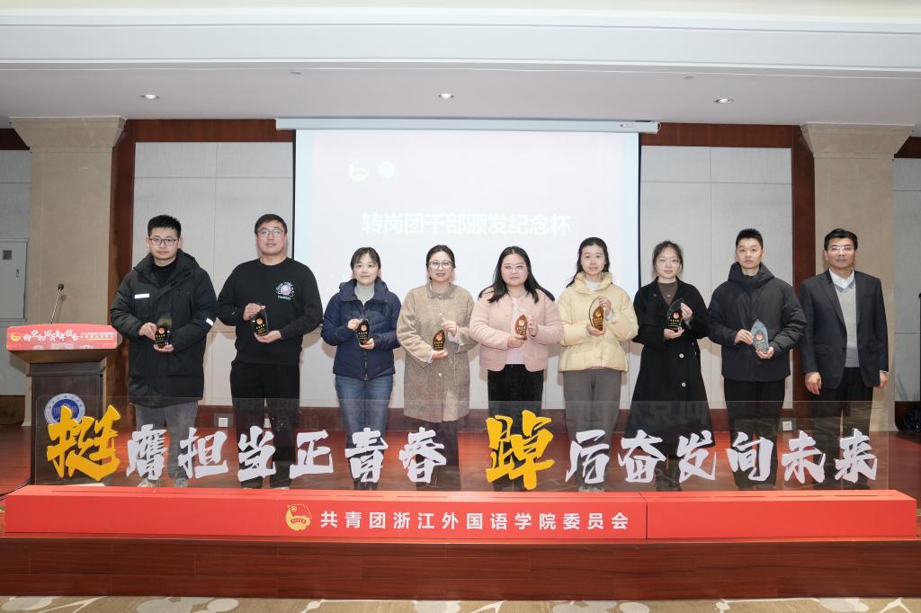 会上,徐勇为2023年因岗位调整离开共青团战线的教师颁发纪念奖杯。