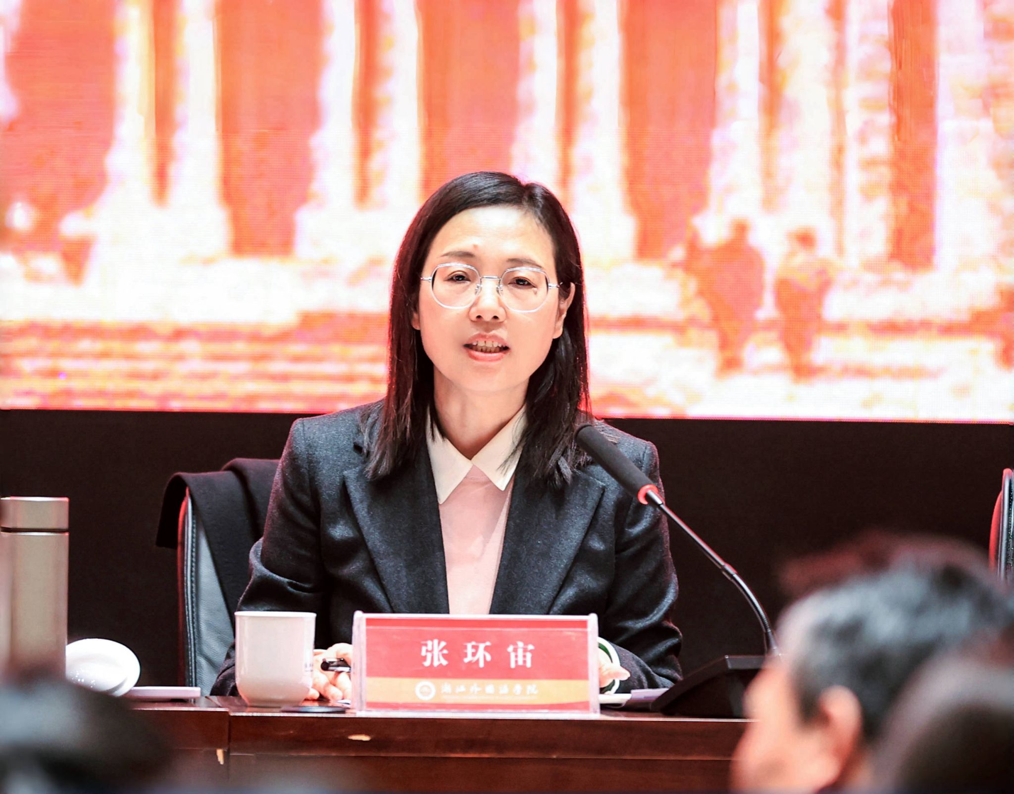张环宙指出,2023年,学校谋大事抓要事,各项事业稳步推进,重点工作多点突破,发展势头保持良好,工作成效显著,交出的答卷可圈可点,充分体现了干部队伍的凝聚力、战斗力。但对于存在的问题短板,需压实责任精准施策。面向未来,张环宙指出,要提前谋划部署,确保明年工作开好局。一是要进一步科学精准谋划未来工作。2024年是学校第三次党代会召开之年,各职能部门和学院要认真做好成绩和经验的回顾总结,尤其要围绕学校“服务新型国际关系”和“外语名校”的办学新定位,科学谋划未来五年学校建设与发展的总体思路和目标任务,加快工作进程,着力把“规划图”变成“施工图”。二是要进一步提高学科建设和科研水平。要以学科建设为龙头,推进硕士学位点建设和省一流学科建设,科学优化学科布局,打造学科集群,加大高水平科研成果培育力度,加快高水平智库建设,建设浙派学术高地。三是要进一步抓好指标任务的执行管理。加强战略系统的政策支撑与管理执行,落实我省综合考核精神,强力推进“十四五”发展规划落实落地;升级人才引育政策,进一步加强基于战略目标的岗位聘任体系建设,切实提升岗位绩效产出。四是要进一步提升人才培养质量。有序开展审核评估自评自建,强化思政育人价值,把思政教育贯穿到人才培养全方位全过程,持续深化教育教学改革,加大专业建设力度,持续提升教学质量。五是要进一步打造学生乐学教师乐业的育人环境。推动校园基础设施提质优化,用足用好省高校基础设施提质工作的相关政策,加快推进三期后续工程建设,做好提质行动类工程方案设计,让校园更舒适,让师生更幸福。