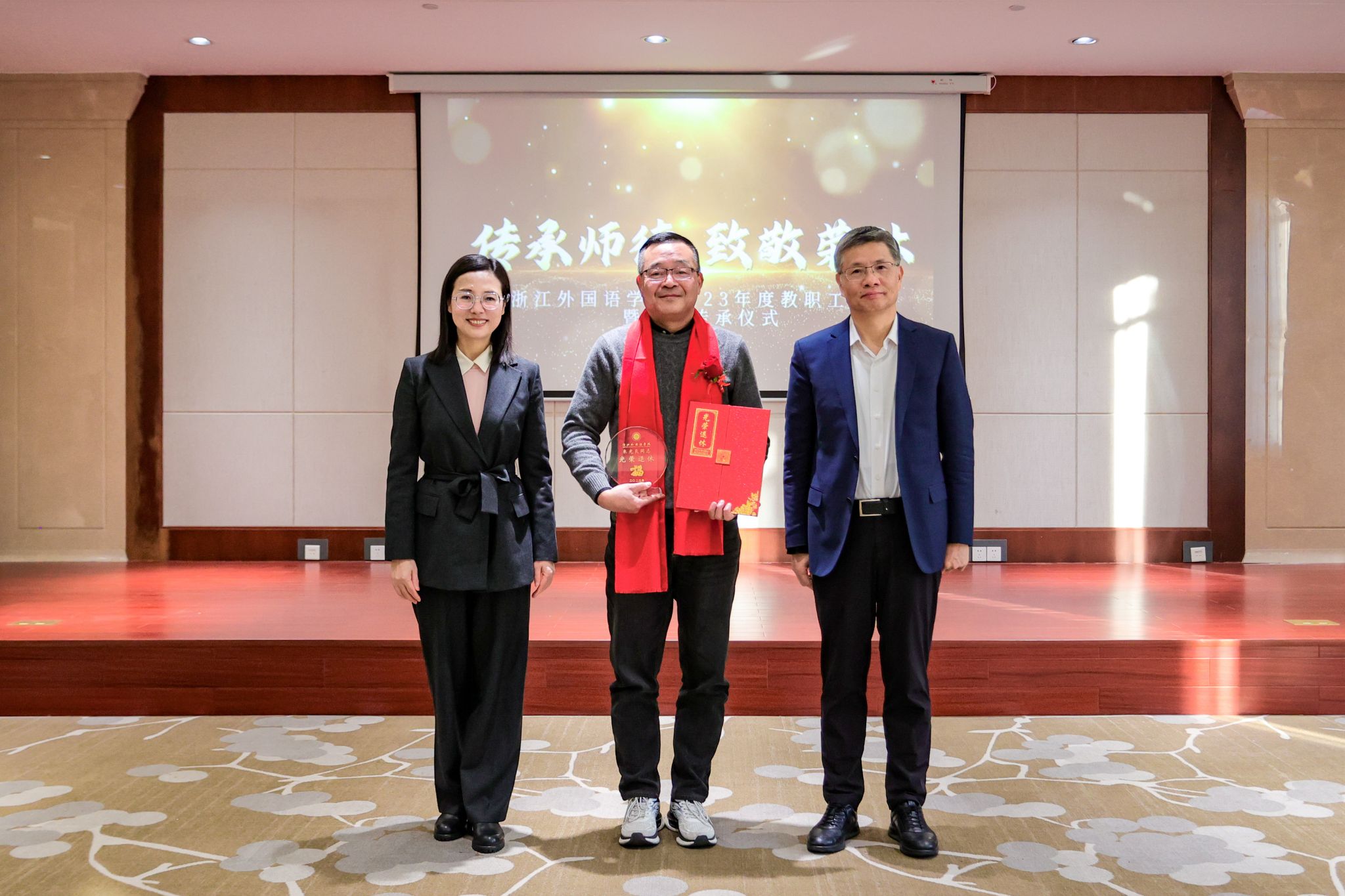 青年教师拜师仪式上,校长、党委副书记张环宙为导师颁发聘书。