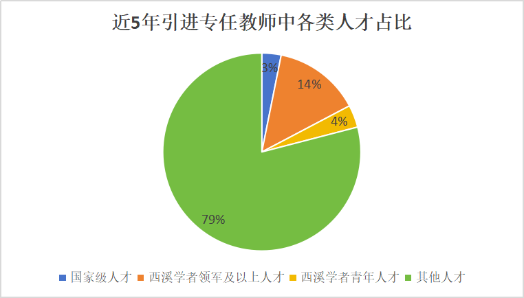 五年来,共引进专任教师192人(含全职聘任资深教授、特聘教授15人),其中,国家级人才6人、西溪学者领军及以上相当高层次人才28人、西溪学者青年人才7人;具有博士学位者168人。此外还长期聘任外籍教师50余人。学校队伍学历层次持续提升,具有博士学位教师占比由48%提升至66%,队伍国际化水平优势明显,具有6个月以上海外经历教师占比达56%,在同类院校中位居前列。