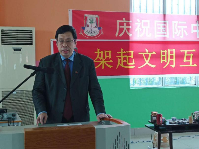 近日,中国驻赤道几内亚大使馆与赤几孔院在教学点Canige中学共同举办联合国第15个国际中文日庆祝活动。中国驻赤道几内亚大使王文刚,赤几文化旅游与手工业促进部代表、孔院各中小学教学点校长、中国援赤几医疗队代表,赤几孔院中外方院长、全体教师和教学点部分学生等400余人参加活动。