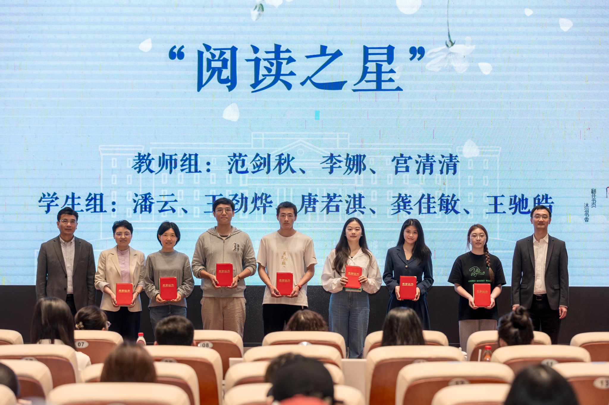 “书香学院”获奖代表商学院院长范徵,“阅读之星”代表、教育学院22级学前教育专业潘云分别作交流发言。