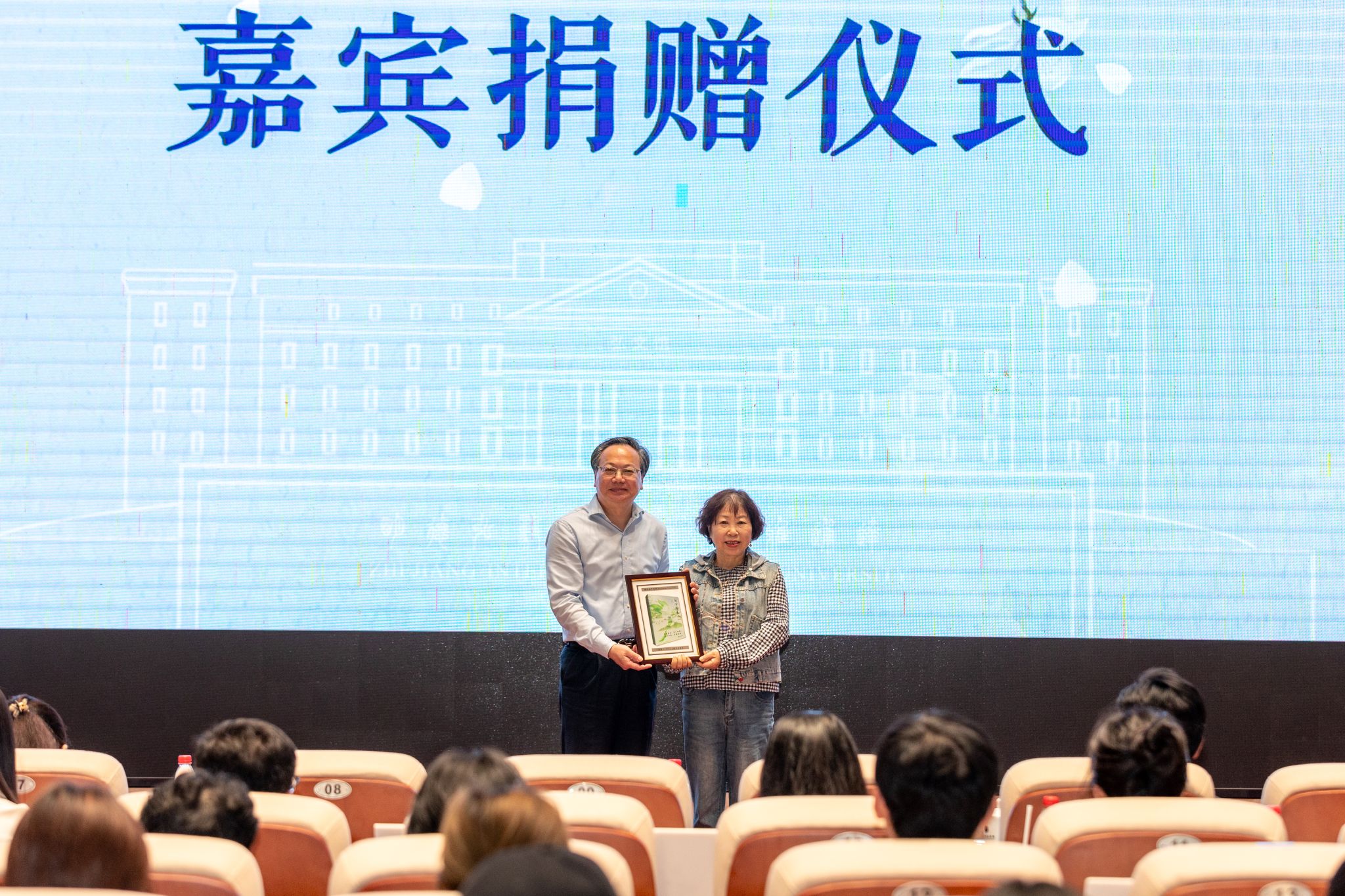 在分享会上,王旭烽教授以“一盏新茶品江南”为题,为现场师生带来了别开生面的茶文化讲座。她从茶文化的中国文化符号意义、空间与时间、家国与国家等三个方面,以茶为媒,分享了她数十年的学术沉淀,带给了师生一场文化之旅。王教授还向开云官网特别签赠了茅盾文学奖作品《茶人四部曲》。