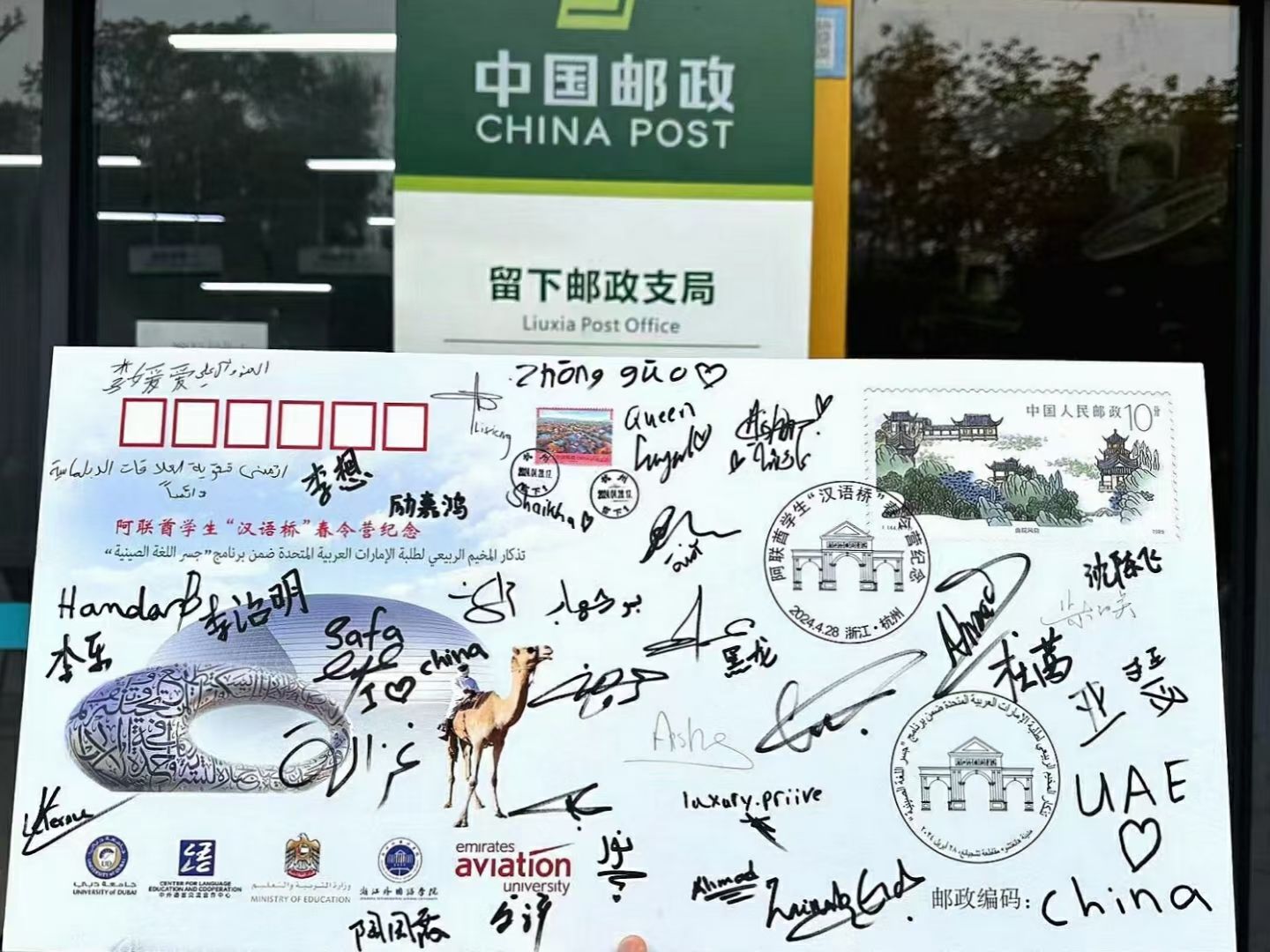 盖着留下邮政局日戳的纪念封,承载着每位营员的名字与祝福,也将代表着中阿青年的友谊天长地久。