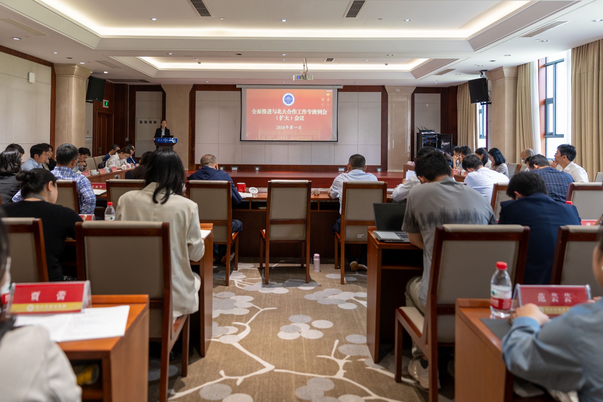 全面推进与北大合作工作专班全体成员参加会议,相关职能部门、二级学院的有关负责人、高层次人才代表列席会议。