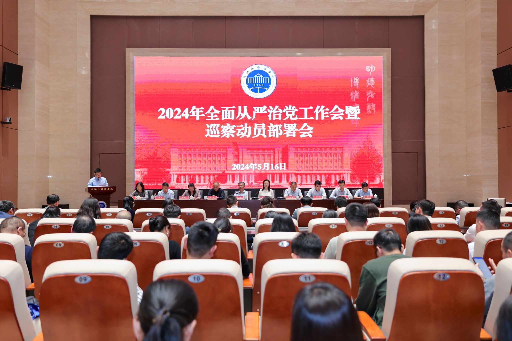 5月16日,学校召开2024年全面从严治党工作会暨巡察动员部署会。校党委书记宣勇出席并讲话。校长、党委副书记张环宙主持。在校党政领导班子成员出席。