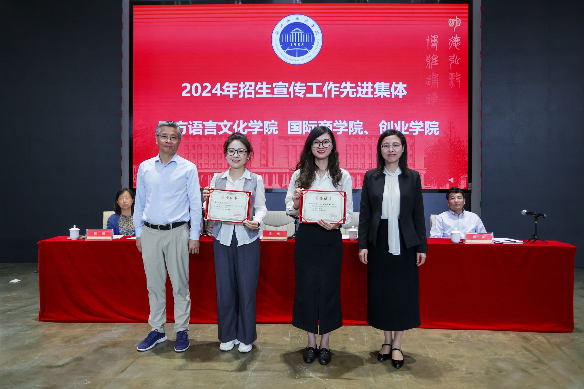 会议对2023年招生宣传工作先进集体和个人进行了表彰。西语学院,商学院、创业学院,文旅学院,艺术学院分别就招生宣传工作和就业工作进行了交流发言。