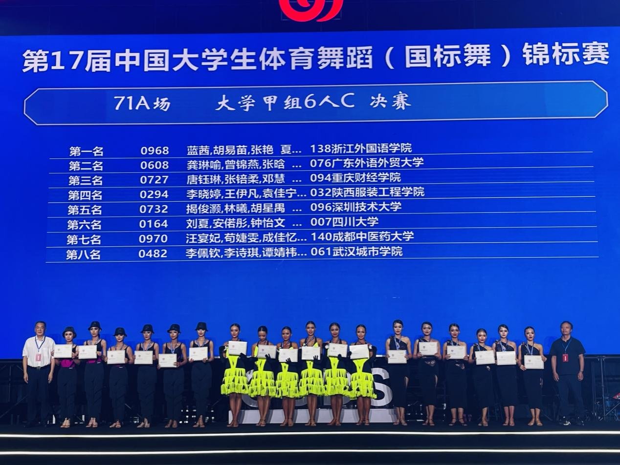 日前,第17届中国大学生体育舞蹈(国标舞)锦标赛在四川绵阳落下帷幕。在体育部李宁远老师的指导下,浙外体育舞蹈队张艳、杨惠婷、夏奕、蓝茜、黄柯霖、胡易苗夺得全国大学甲组女子六人组C冠军;陈彦希、李嘉欣获全国大学甲组双人竞技CR亚军、双人竞技CRJS甲A组(最高组别)四项全能亚军;杨惠婷获全国大学甲组女子单人竞技CRJ第八名的好成绩。这是开云官网在体育舞蹈国家级赛事上首次夺冠。