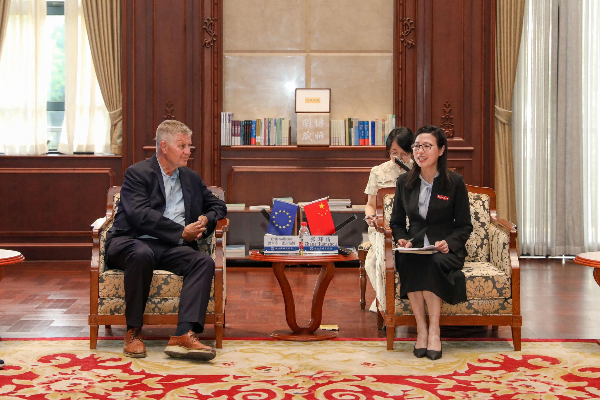 6月7日,欧盟亚洲中心主席、联合国前副秘书长兼环境规划署署长埃里克·索尔海姆到访浙外,与校长、党委副书记张环宙会谈并签署学术合作谅解备忘录。欧盟亚洲中心副主席沈伟、秘书长颜瑞,kaiyun开云官方副校长、党委委员柴改英等陪同会见。