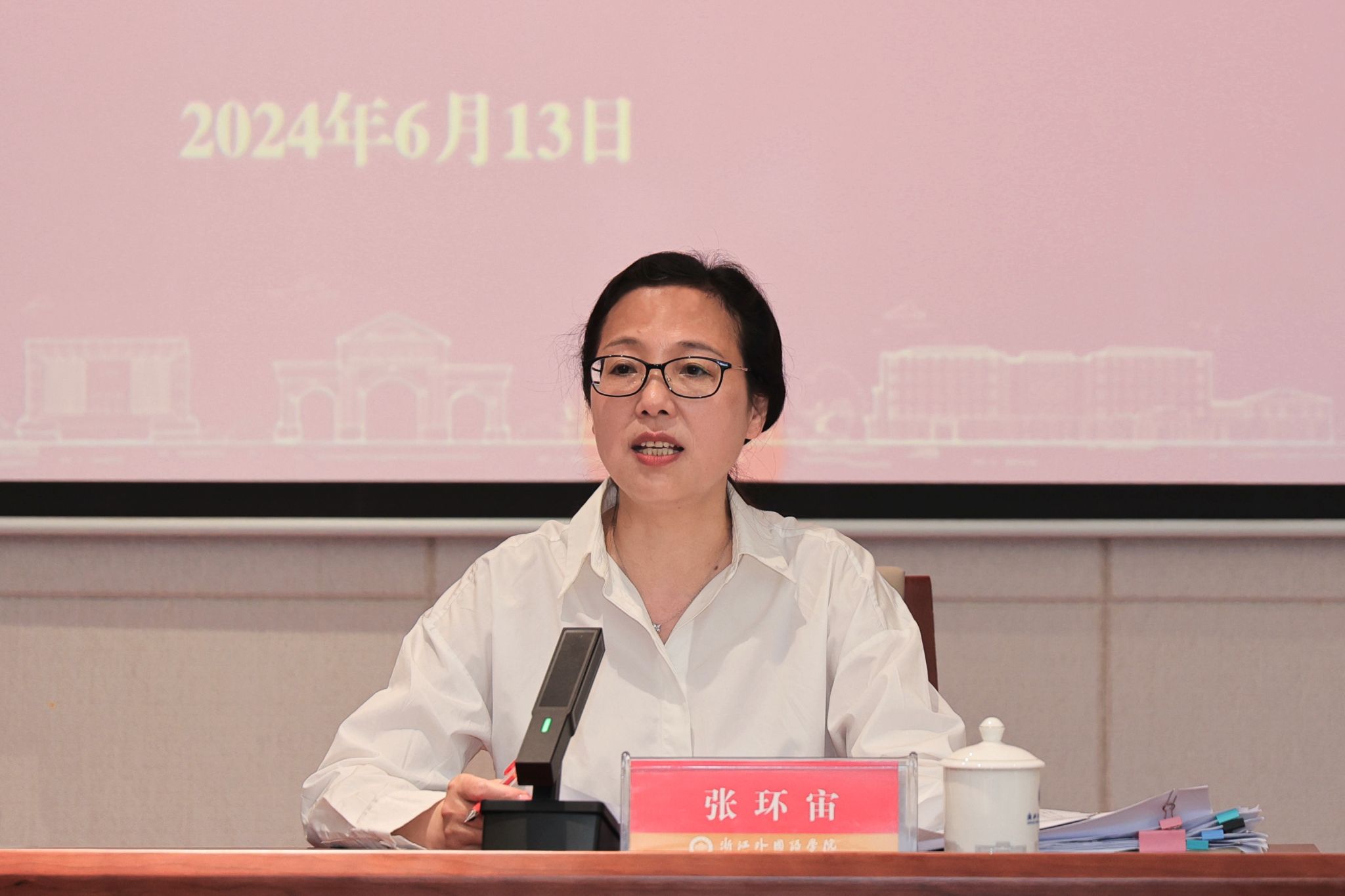 张环宙传达了省委书记易炼红来校考察调研讲话精神,并对学校下一阶段工作作具体部署。她强调,要推进人才队伍建设,绘制人才引育地图,优化人才引进方式,创设人才发展的良好环境,让各类人才焕发内生动力;要提高学科建设和科研水平,加快建构与服务新型国际关系特色相适应的学科布局,通过开展有组织科研争取重大项目和成果的培育与突破;要加强高层次人才培养,做好专业建设顶层设计,提升专业内涵,强化升学就业指导,促进毕业生更加充分更高质量就业;要深化国际交流合作,继续扩大对外开放,拓展国际合作朋友圈,推动相关合作项目落实落地、相关合作平台提质增效。