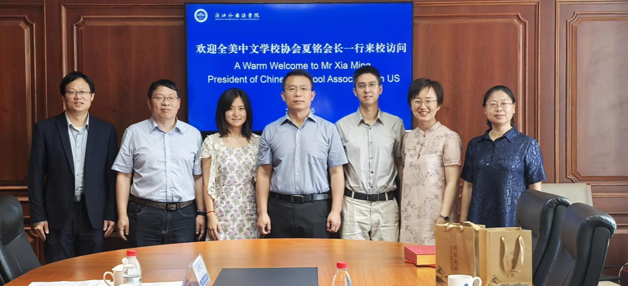 6月15日,全美中文学校协会会长夏铭一行来校交流。副校长、党委委员毛振华主持座谈会。