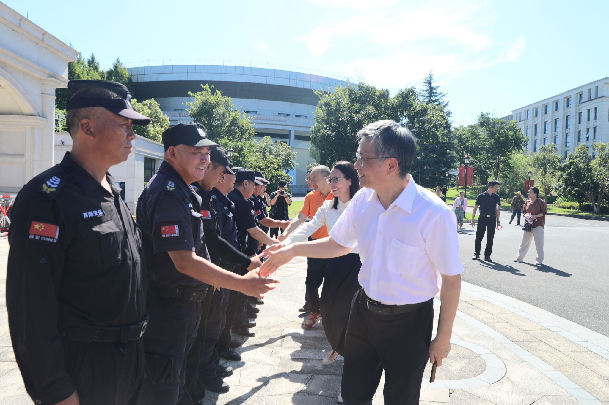 7月29日,校党委书记宣勇,校长、党委副书记张环宙带队慰问暑期坚守岗位的教职员工。副校长、党委委员张梁、姚旻陪同走访。