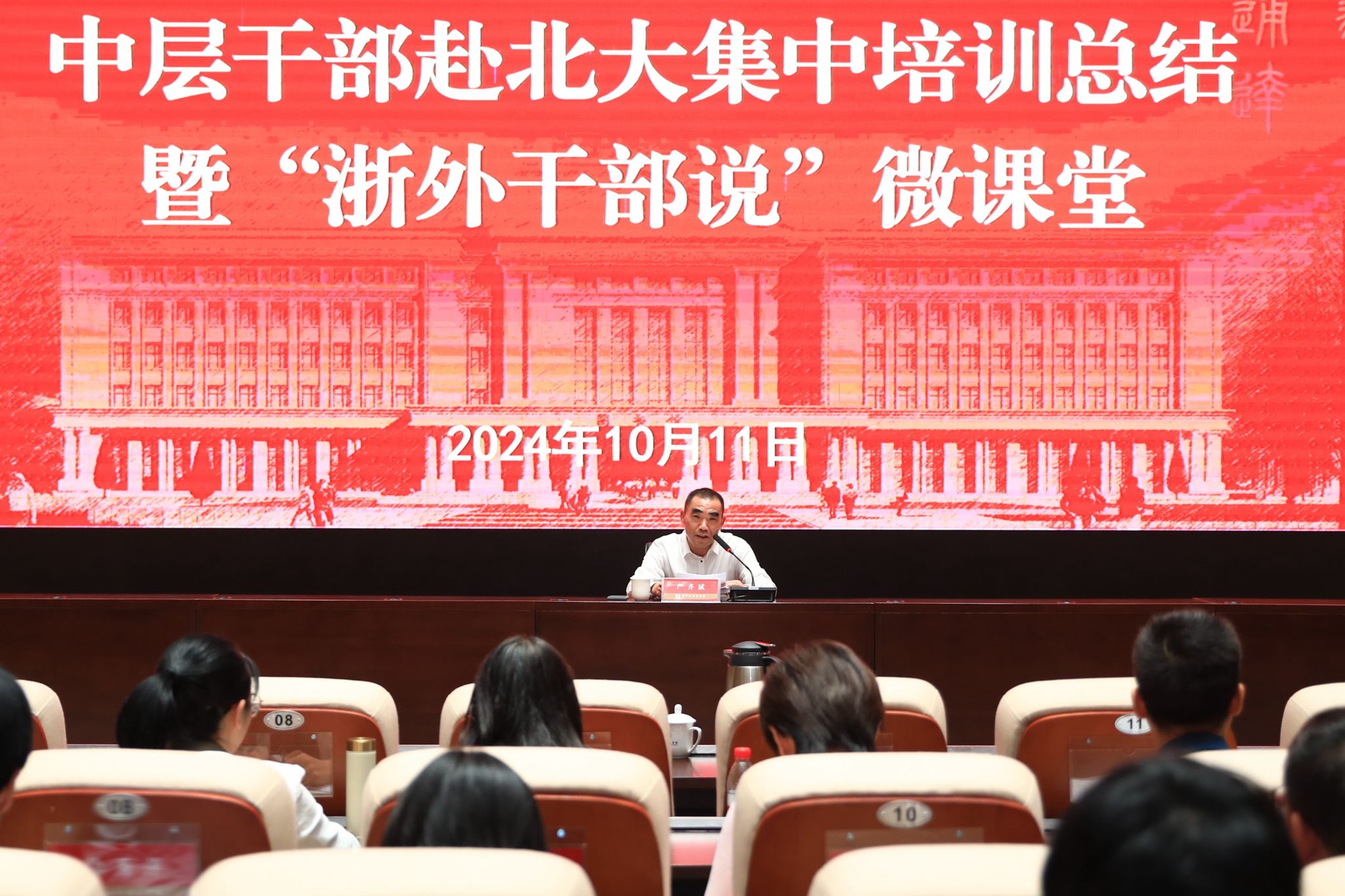 10月11日,学校举办中层干部赴北大集中培训总结交流,开展“浙外干部说”微课堂第十三至二十讲。校党委副书记严齐斌主持,全体中层干部参加。