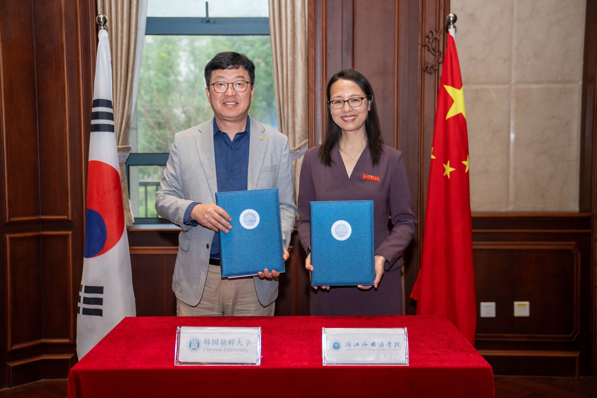 张环宙表示,中韩两国一衣带水,人文交流贯穿千年,推动两校合作与交流符合双方共同利益。她高度评价朝鲜大学的建校理念与教育目标,希望双方进一步拓宽交流渠道,在学生交流交换、专业课程共建、学术平台搭建等领域开展务实合作。她指出,浙江与韩国经贸往来活跃,期待通过两校合作将受益群体从校园拓展到校外的行业企业,为中韩经贸往来和人文交流注入民间力量。